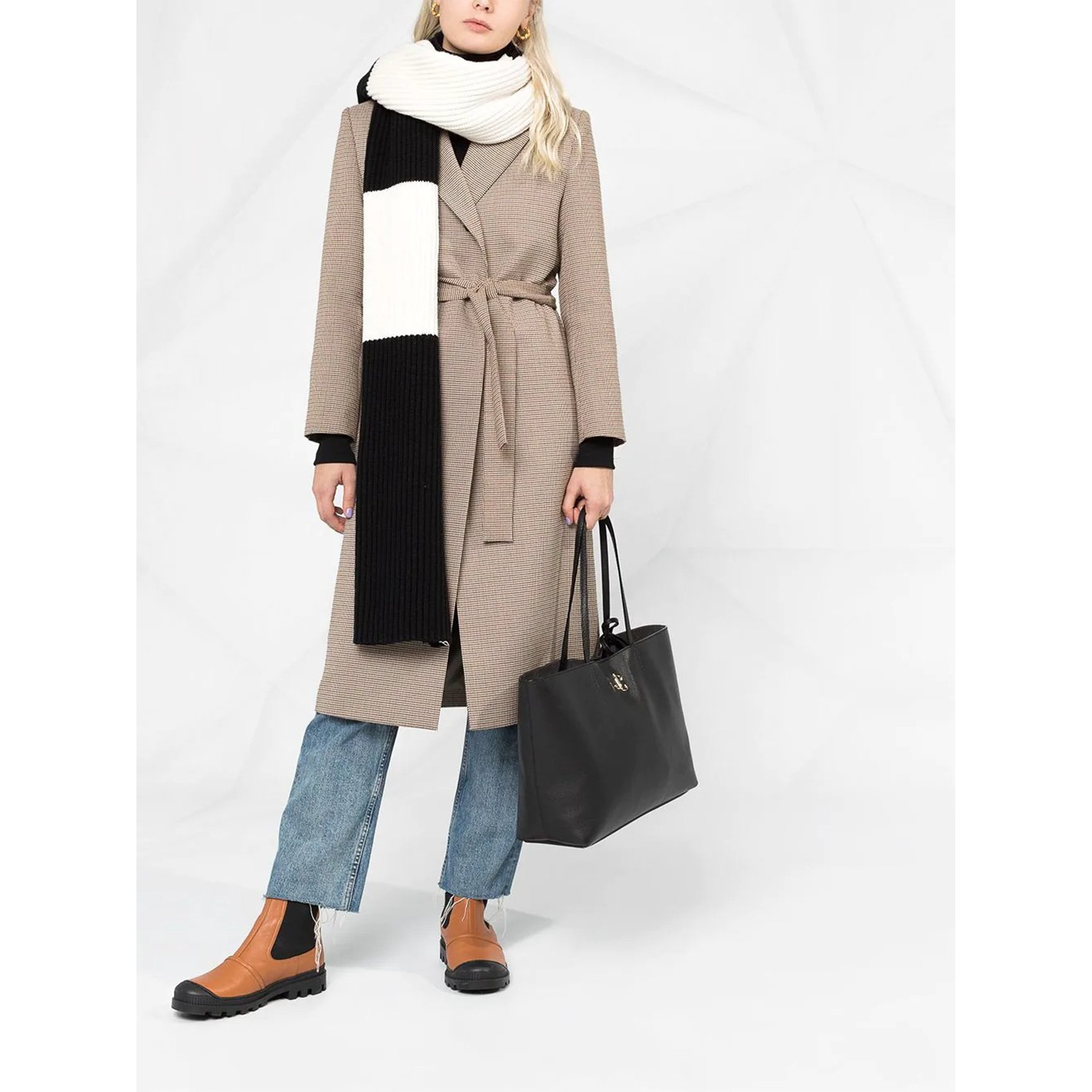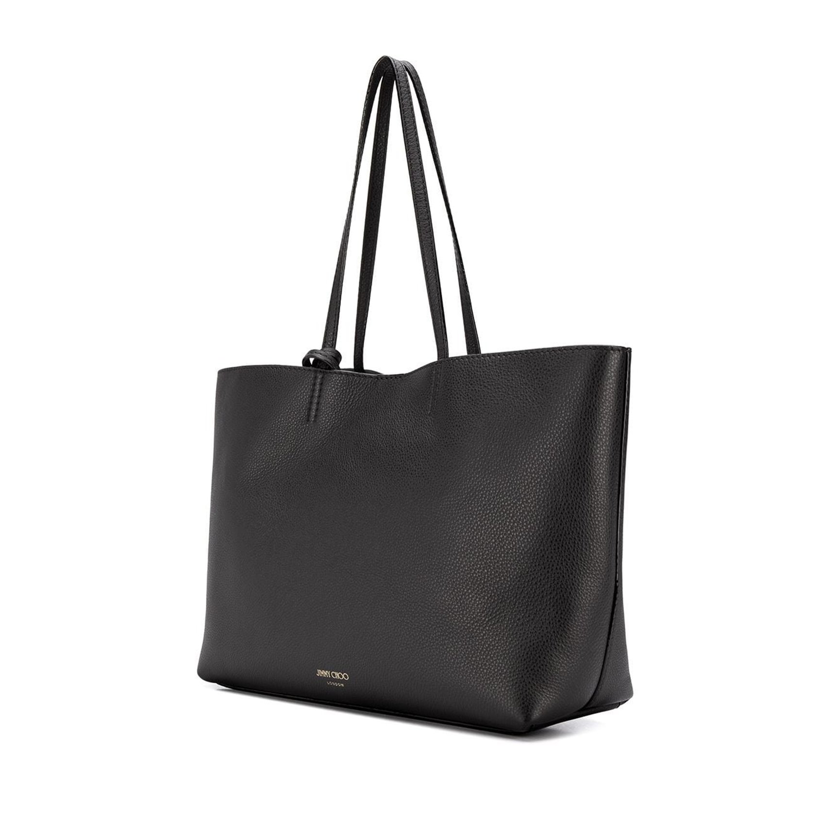 車や電車などでの移動が多いシーンには、膝の上にスムーズに乗る横型トートがフィット。底部分の引きずり傷や、出し入れのしにくさが気になるのなら横に長いデザインが吉。「ジミー チュウ(JIMMY CHOO)」のグレインレザーバッグは、表と裏で異なるロゴが飾られた、二面性を楽しめるアイテムです。取り外し可能なポーチ付き。