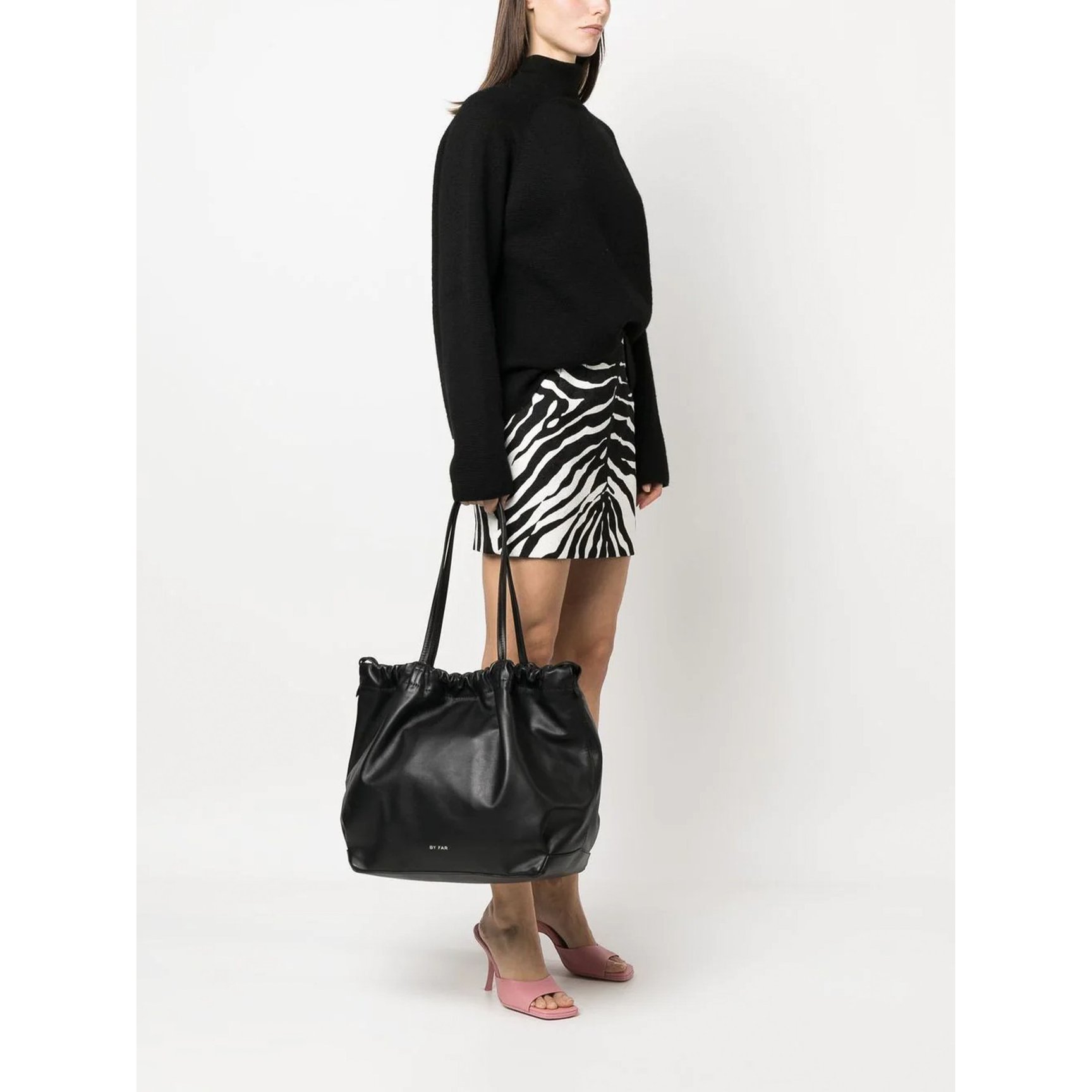 ころんとしたフォルムとドローストリングが愛らしい、「バイファー(BY FAR)」のレザービッグトート。たっぷりの容量が実現するマチの広さで、大切な仕事道具の持ち運びにも、旅行やレジャーのお供にも活躍する予感。荷物を水平に重ねて収納ができるバッグをお探しなら、是非チェックを。