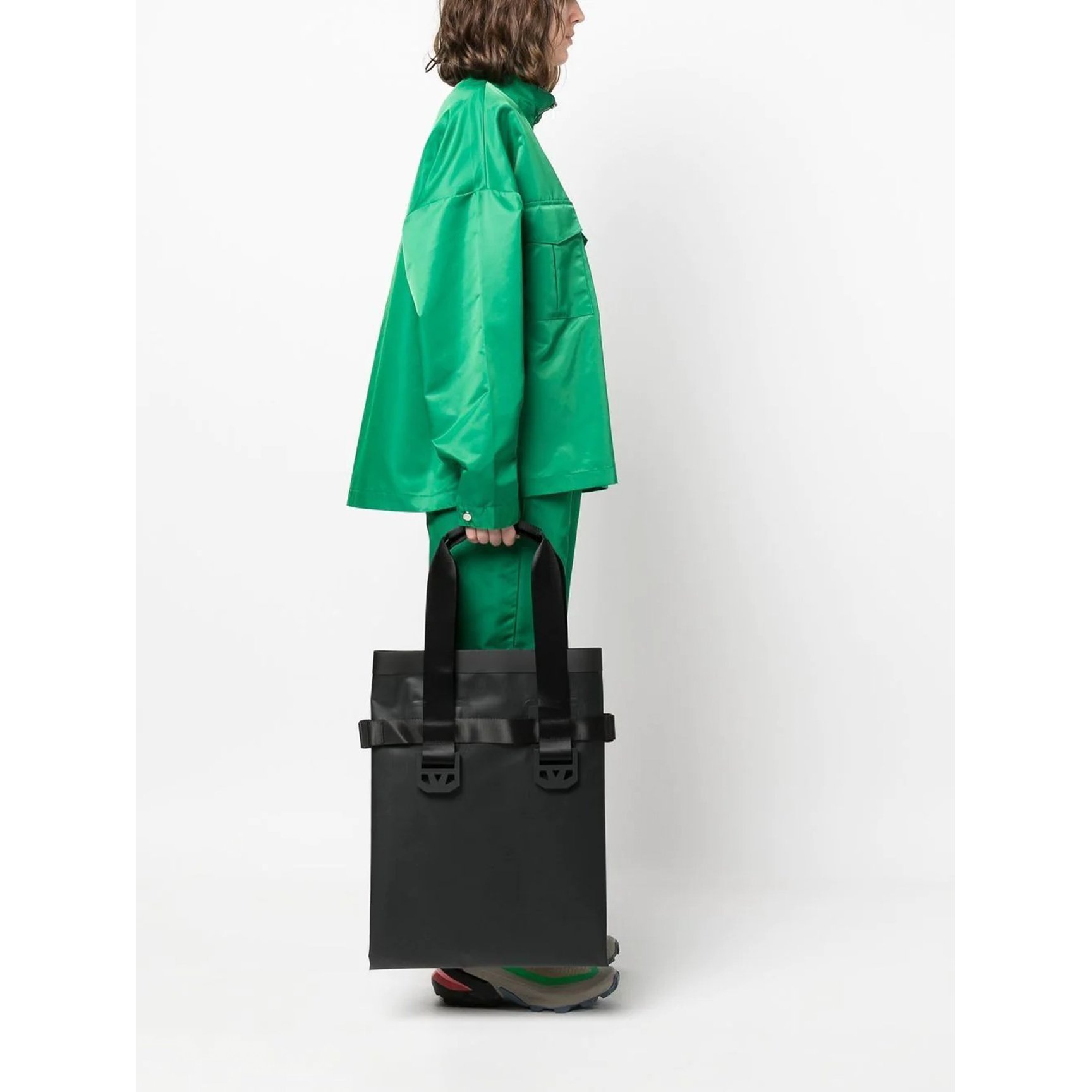 15インチ以上のノートPCや、B4/A3サイズのペーパー類を持ち運ぶなら「レインズ(RAINS)」のハンドバッグがおすすめ。フラットなボディには防水加工が施され、サイドにはコンプレッションストラップを装備し、収納部分を広くとることも可能。ガジェットや商材専用のサブバッグとしてもシックに決まります。