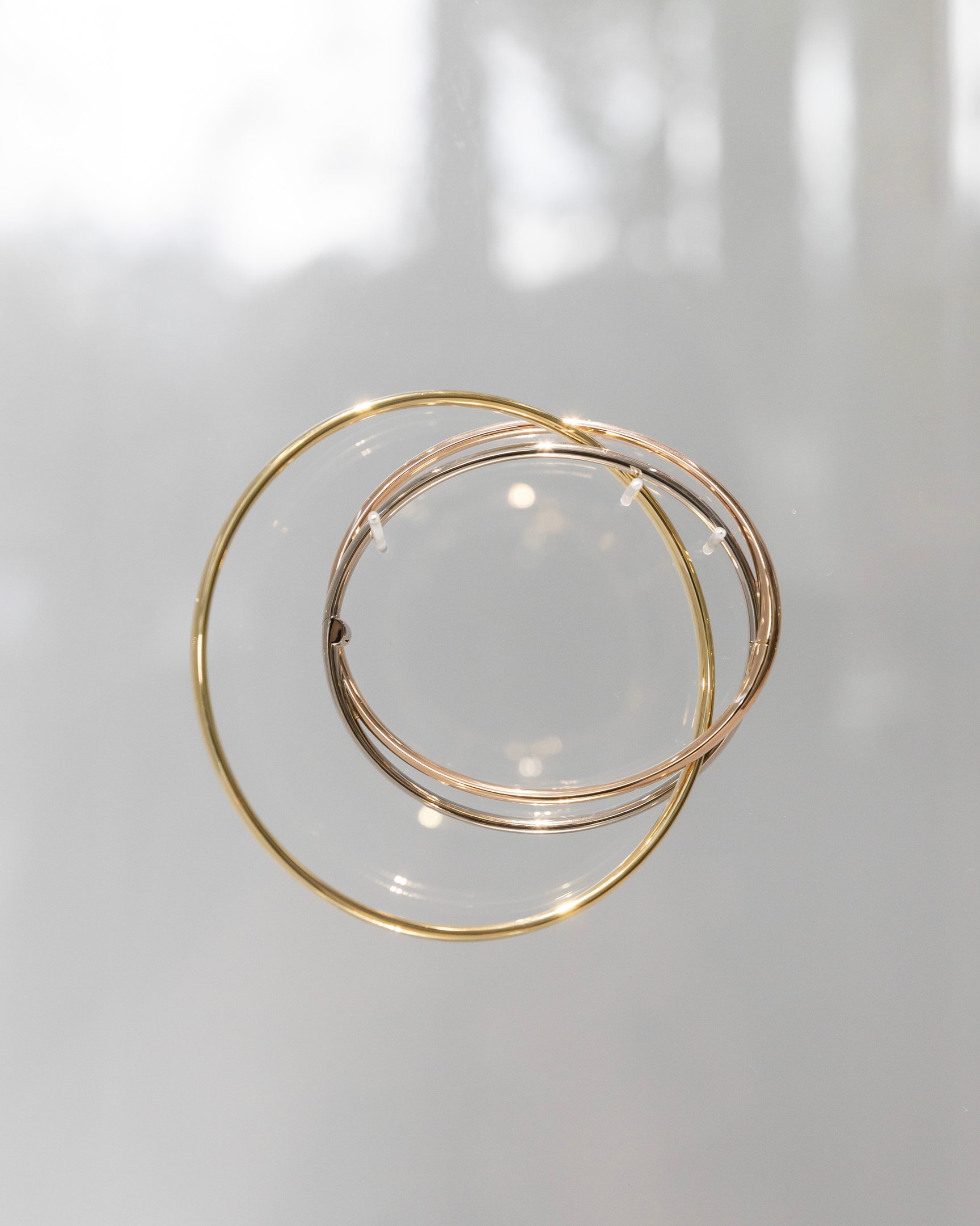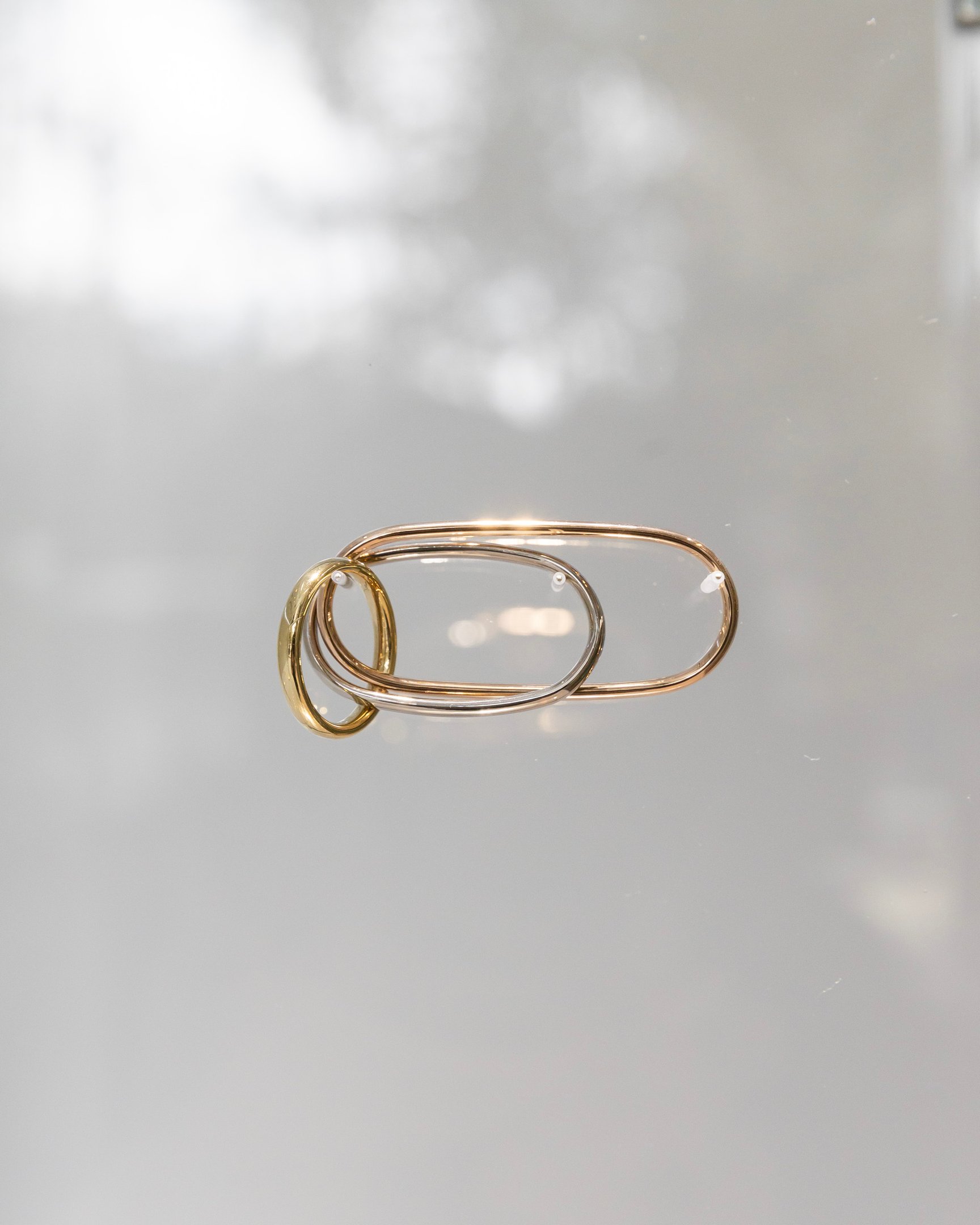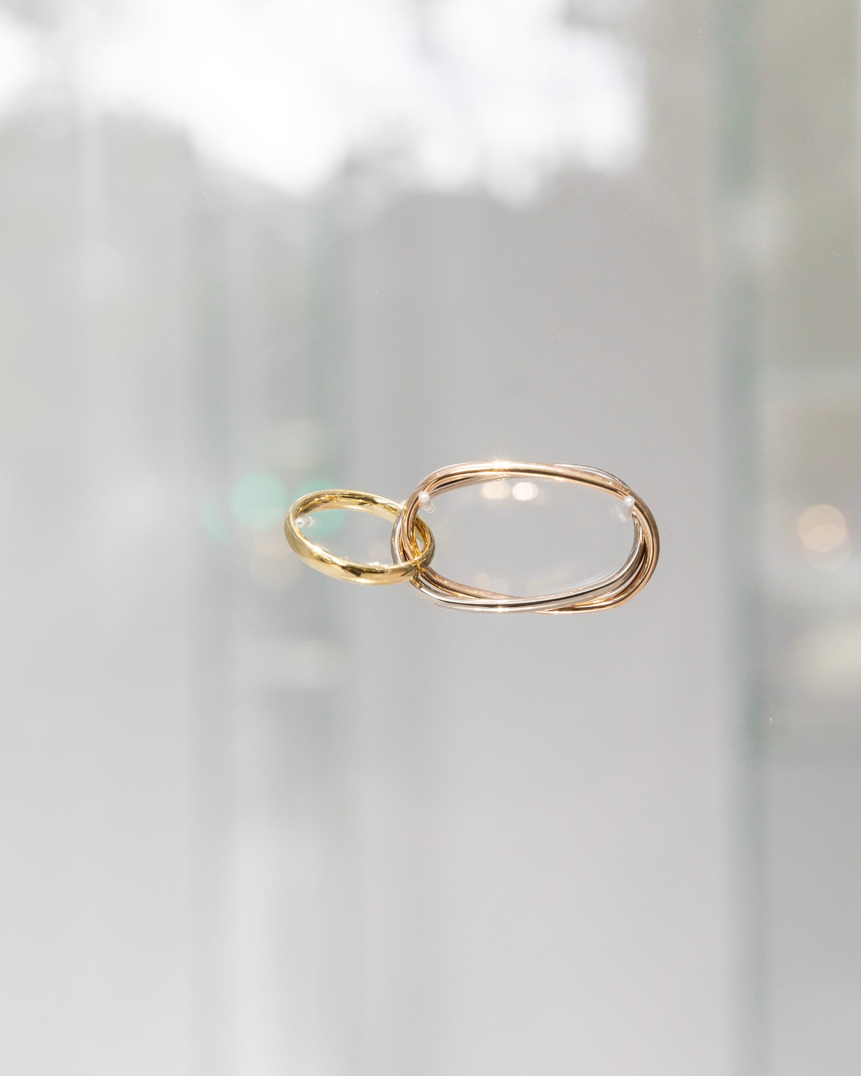「トリニティだけどトリニティじゃない。そして色々な着け方ができるというのもサカイらしい提案だと思います」。リングは配置によって2本または3本、大きいサイズだと最大4本の指に着けることができ、マルチウェイで身に着けられるのもこれまでのトリニティにはなかった新たな視点だ。