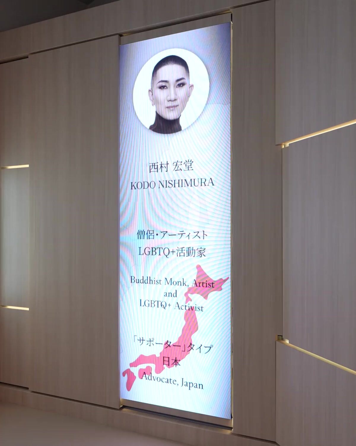 ▲黒柳徹子さんのブースでは「咲くはわが身のつとめなり。/ Bloom with Purpose.」の文字が。これは著書「続 窓際のトットちゃん」に出てくる先生の言葉。自分の個性や才能を最大限に活かし、社会に役立てるべきという意味が込められた力強いメッセージです。そのほか、僧侶でアーティストの西村宏堂さんやわずか10歳で環境問題に取り組む会社を起業した細井愛茉さんなどの日本人も。
