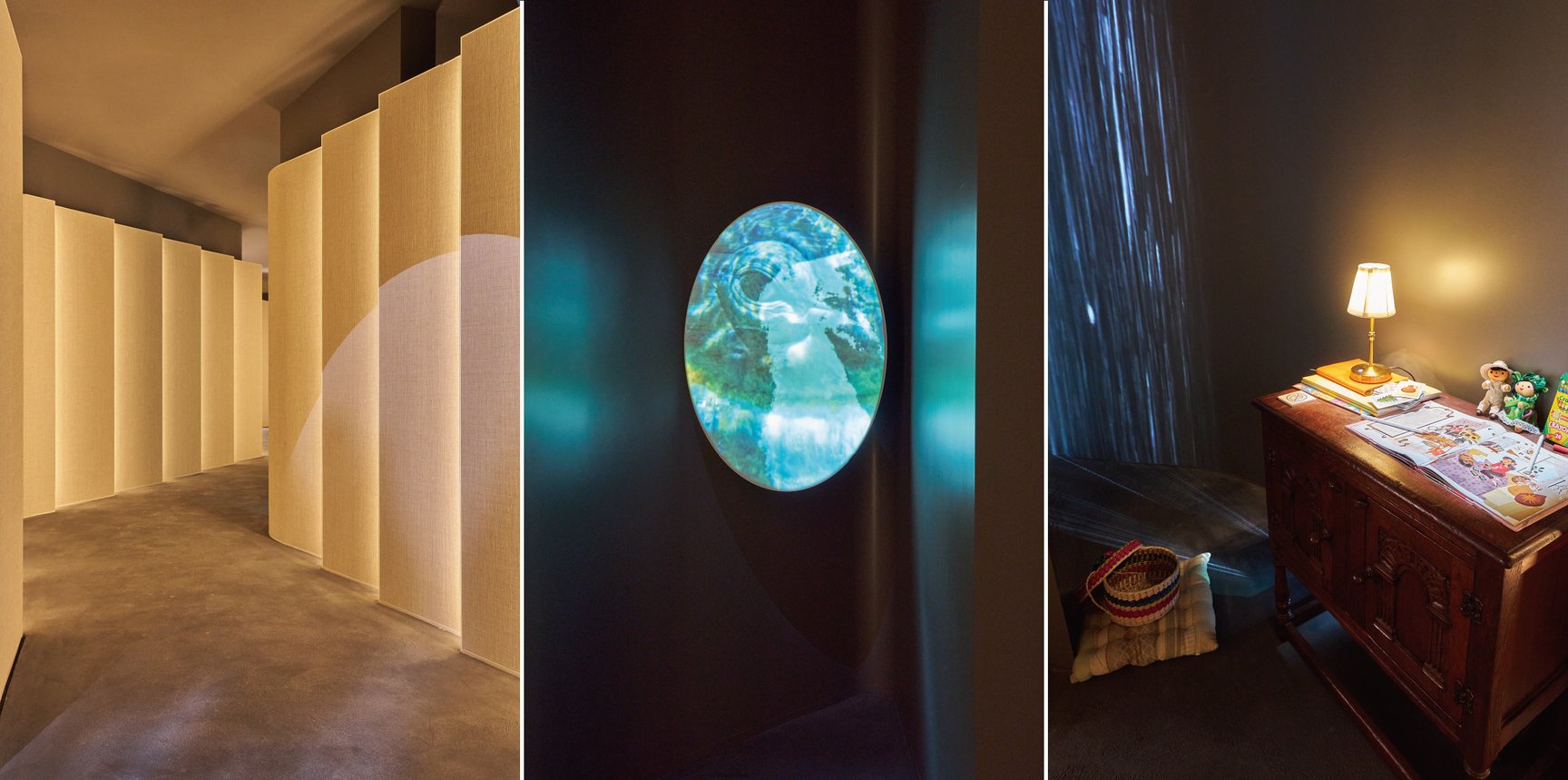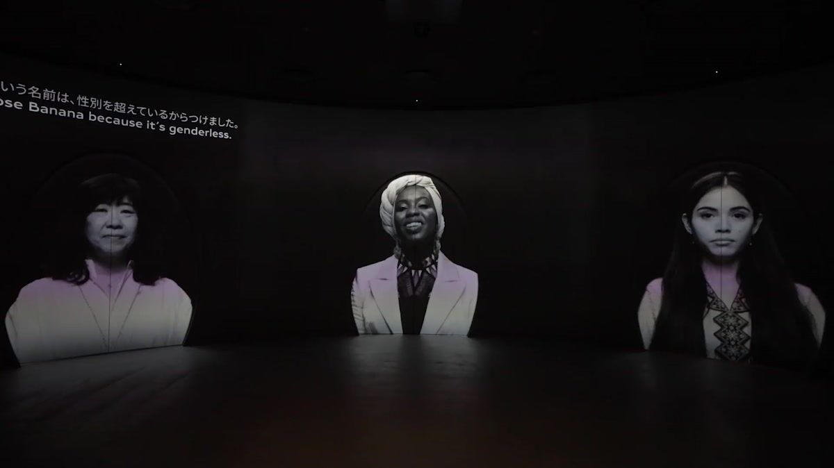 まず、ゲストを迎えるのは「THREE WOMEN」の部屋。エズ・デヴリンと映画監督 河瀨直美が手掛けた3人の女性、小説家 吉本ばなな/詩人・アクティビスト エムティハル・マフムード/環境保護活動家 シエ・バスティダのショートフィルムが投影されています。来場者は「THREE PATHWAYS」で3人のいずれかの人生を辿る物語に導かれ、扉の先へと進みます。