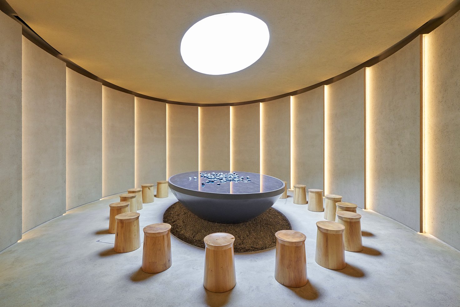 国籍や年齢、職業の異なる3人の女性の歩みを追体験した後は、しばし足を止め、自己と向き合う「MA」のスペースへ。日々、たくさんの人が来場する万博会場でひと時の静寂の時間を過ごします。