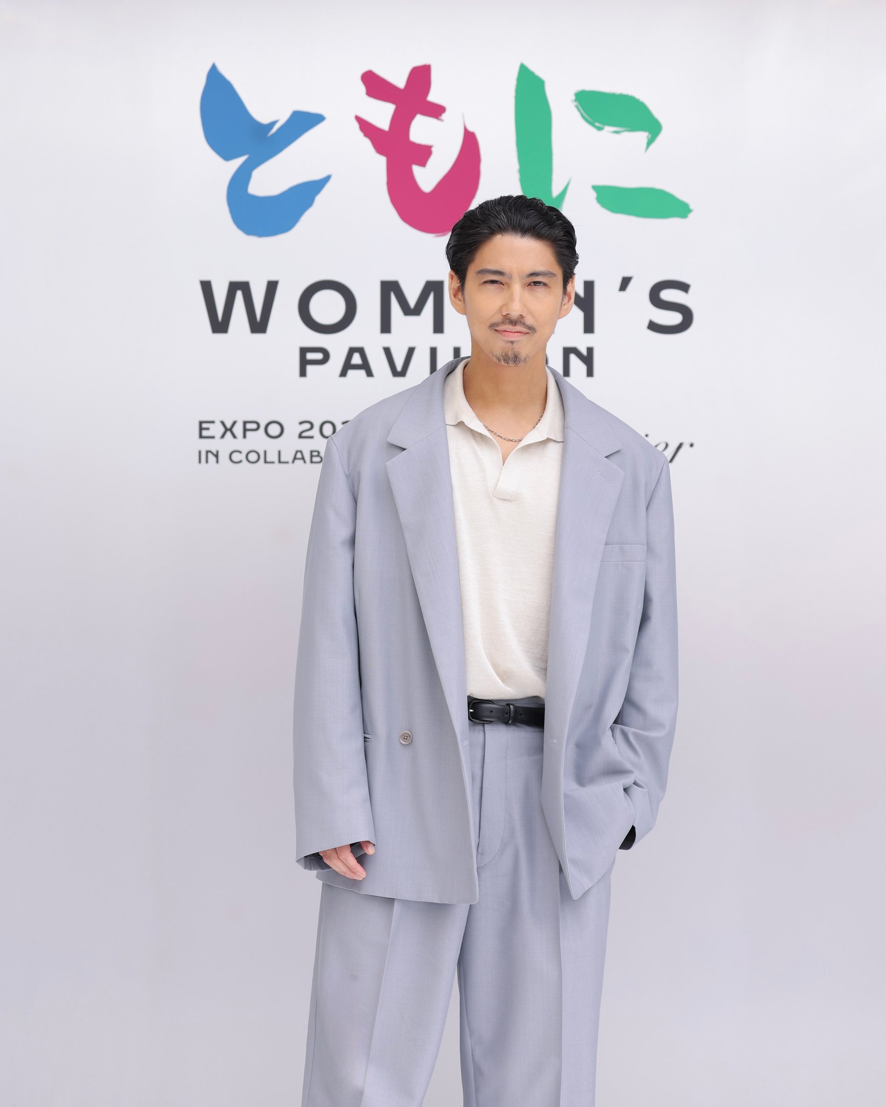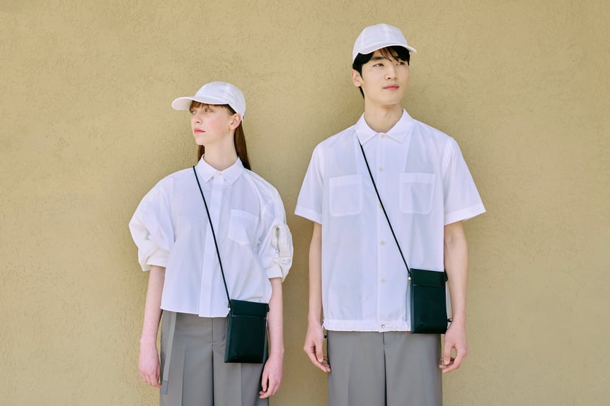 パビリオンのアテンダントユニフォームは、「サカイ(sacai)」デザイナー兼クリエイティブディレクターの阿部千登勢が担当。白のシャツにグレーのパンツを合わせ、サカイらしいシルエットとディテールが特徴です。