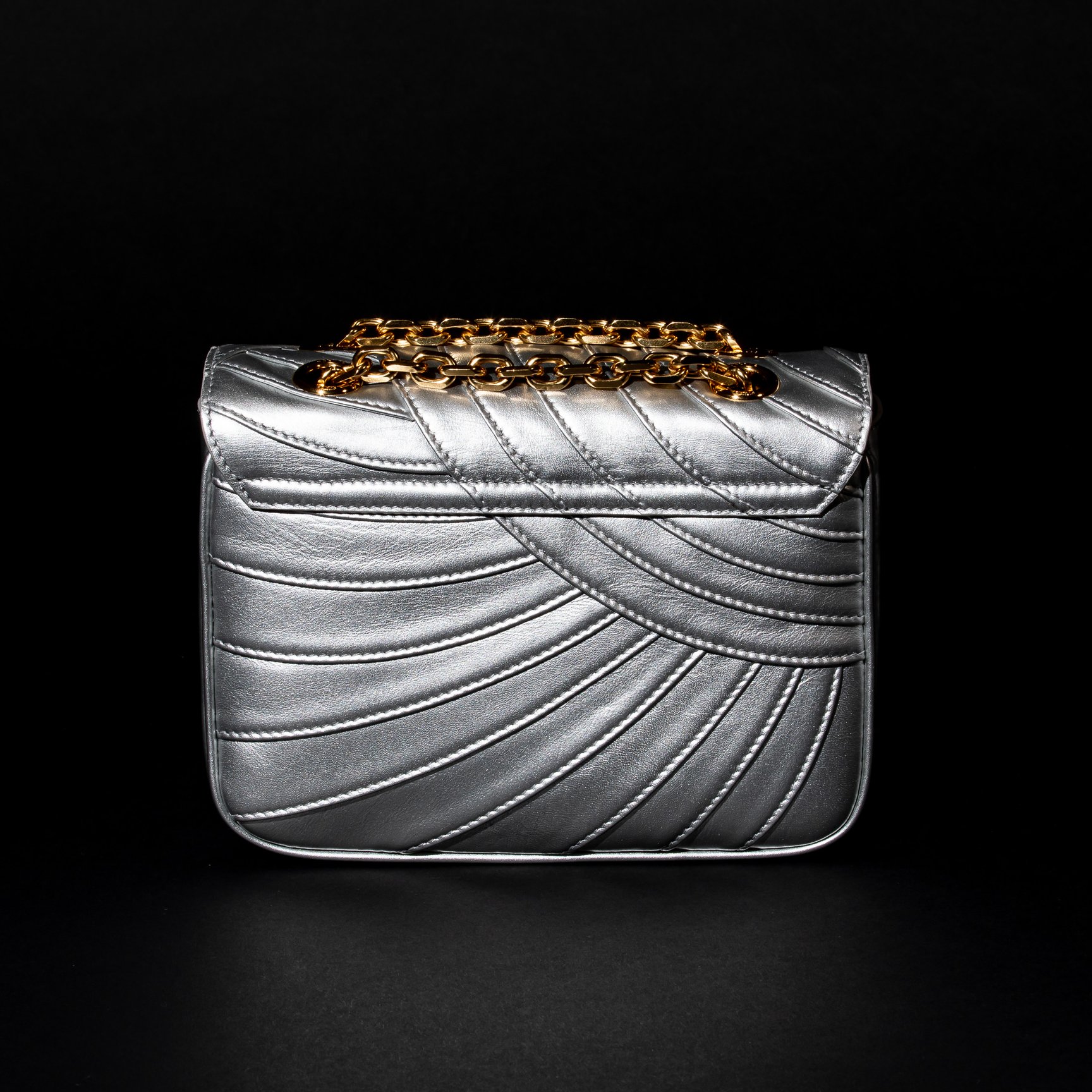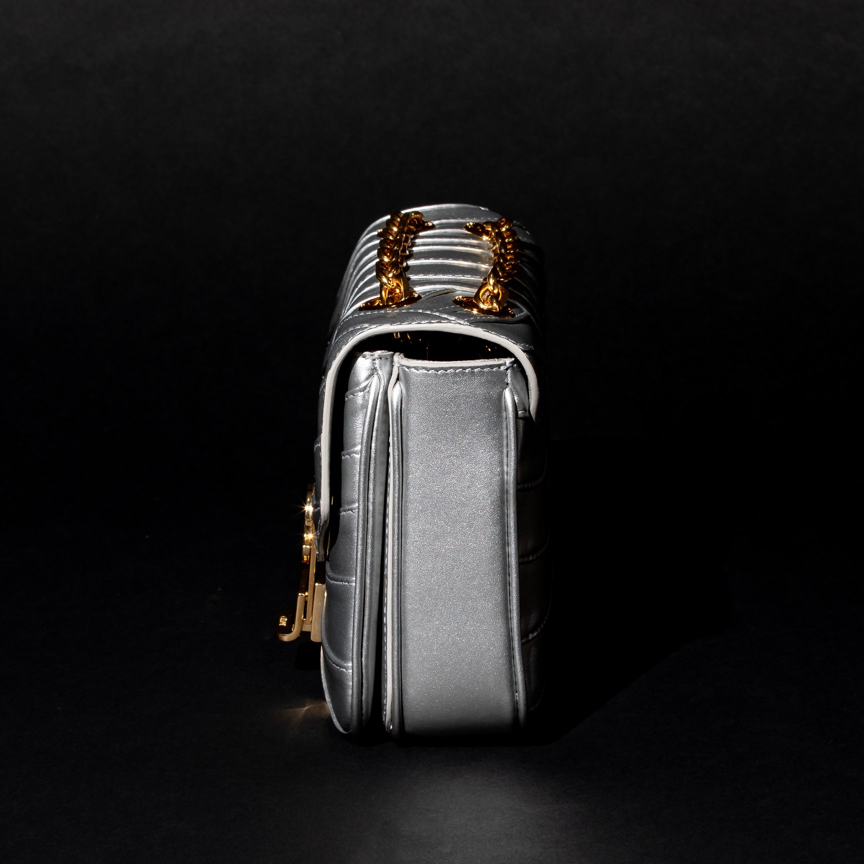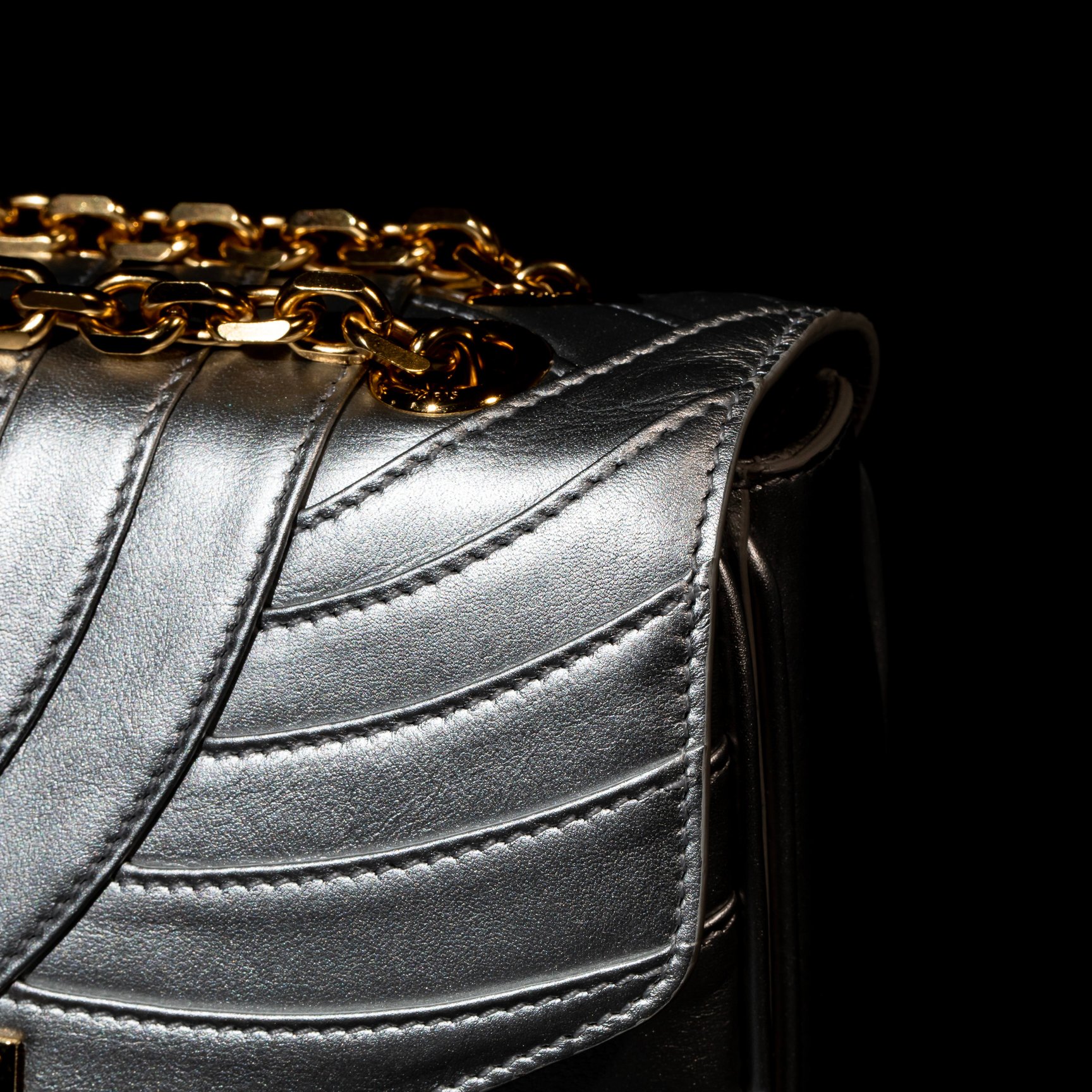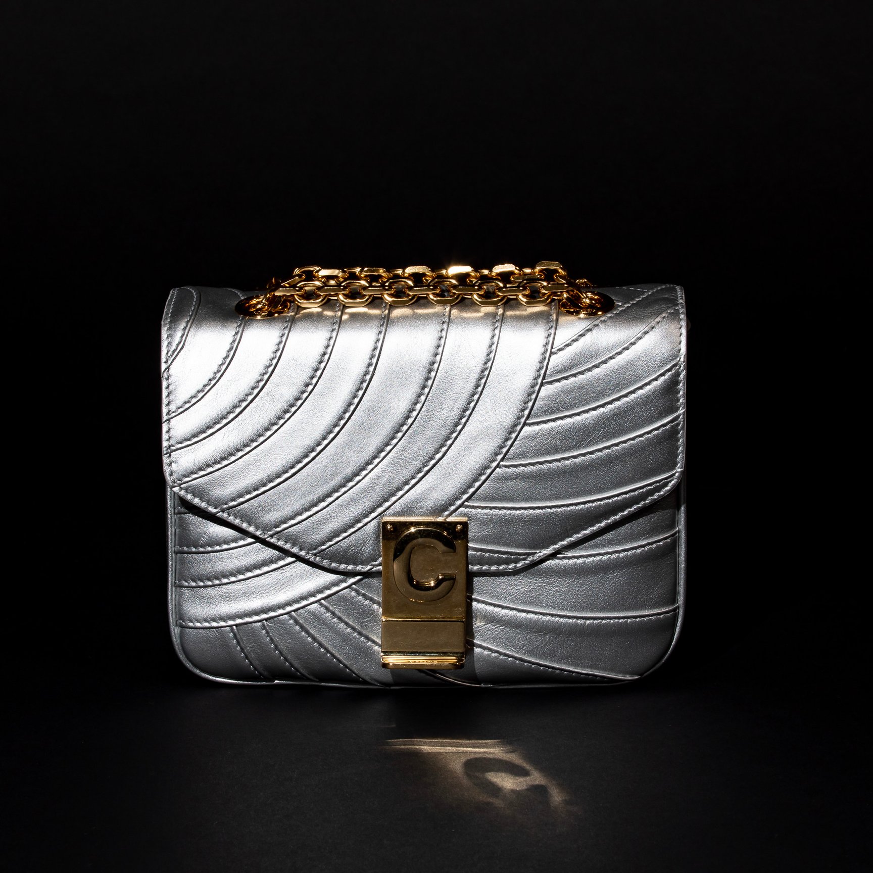 『C<セー>』 ラミネイテッドキルテッドカーフスキン スモール <W19cm×H14.5cm×D6.5cm>¥360,000+tax