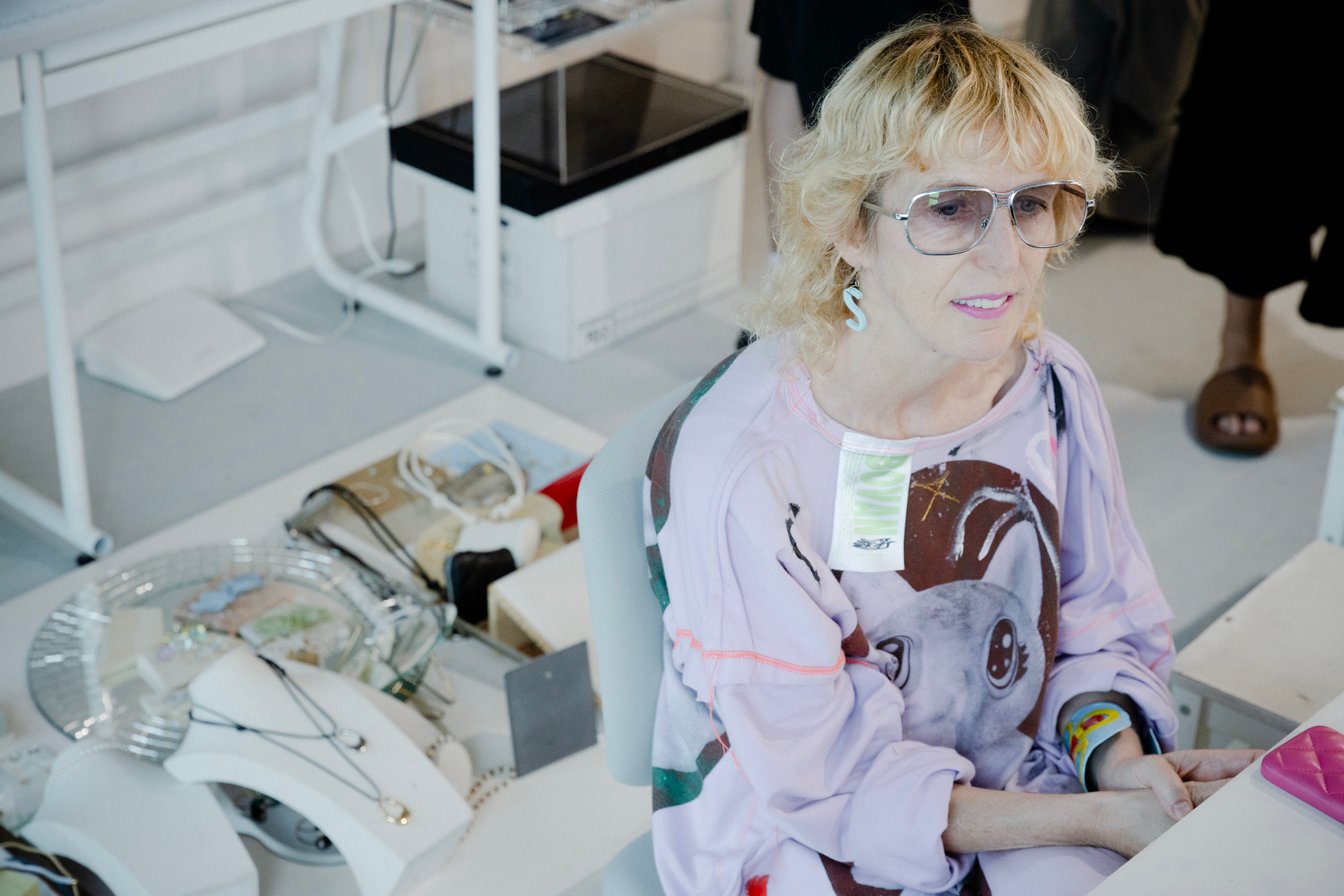 グレスティ教授は、現在「バーバリー(BURBERRY)」のチーフ・クリエイティブ・オフィサーであるダニエル・リー(Daniel Lee)をはじめ、キコ・コスタディノフ(Kiko Kostadinov)やモリー ゴダード(Molly Goddard)、チャールズ・ジェフリー(Charles Jeffrey)ら業界からも注目を集める人気デザイナーを指導してきたという。教え子であるマティ・ボヴァン(Matty Bovan)によるワンピースをまとった彼女に、大事にしている教育方針や、現在の教育現場での課題などを聞いた。