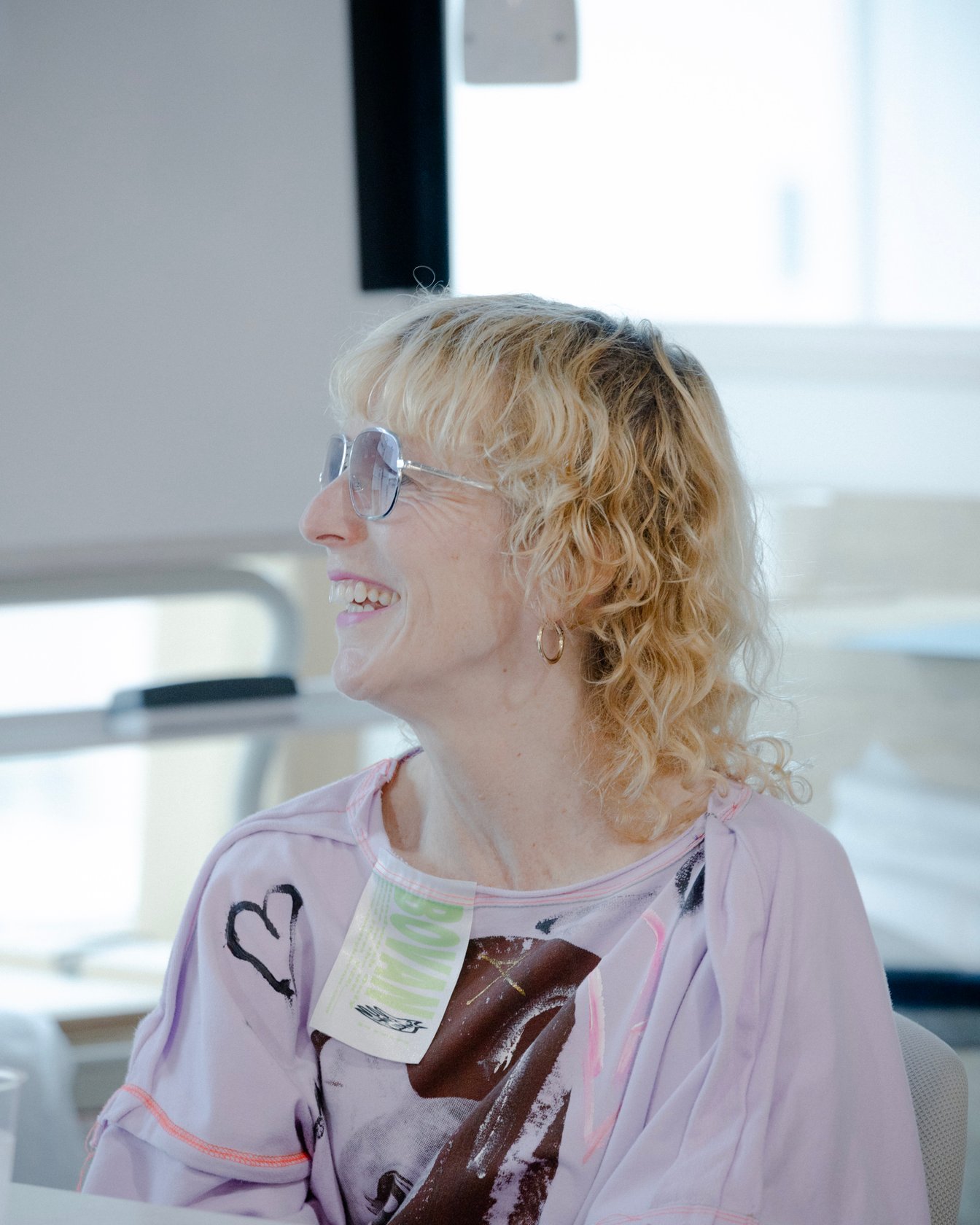 セントラル・セント・マーチンズで2016年から、学士課程のファッションコースでリーダーを務めるサラ・グレスティ(Sarah Gresty)教授が8月末に来日。「リトゥンアフターワーズ(writtenafterwards)」を手掛ける山縣良和が主催するファッションスクール「ここのがっこう(coconogacco)」を訪れ、生徒たちの作品を見ながらコミュニケーションを図った。