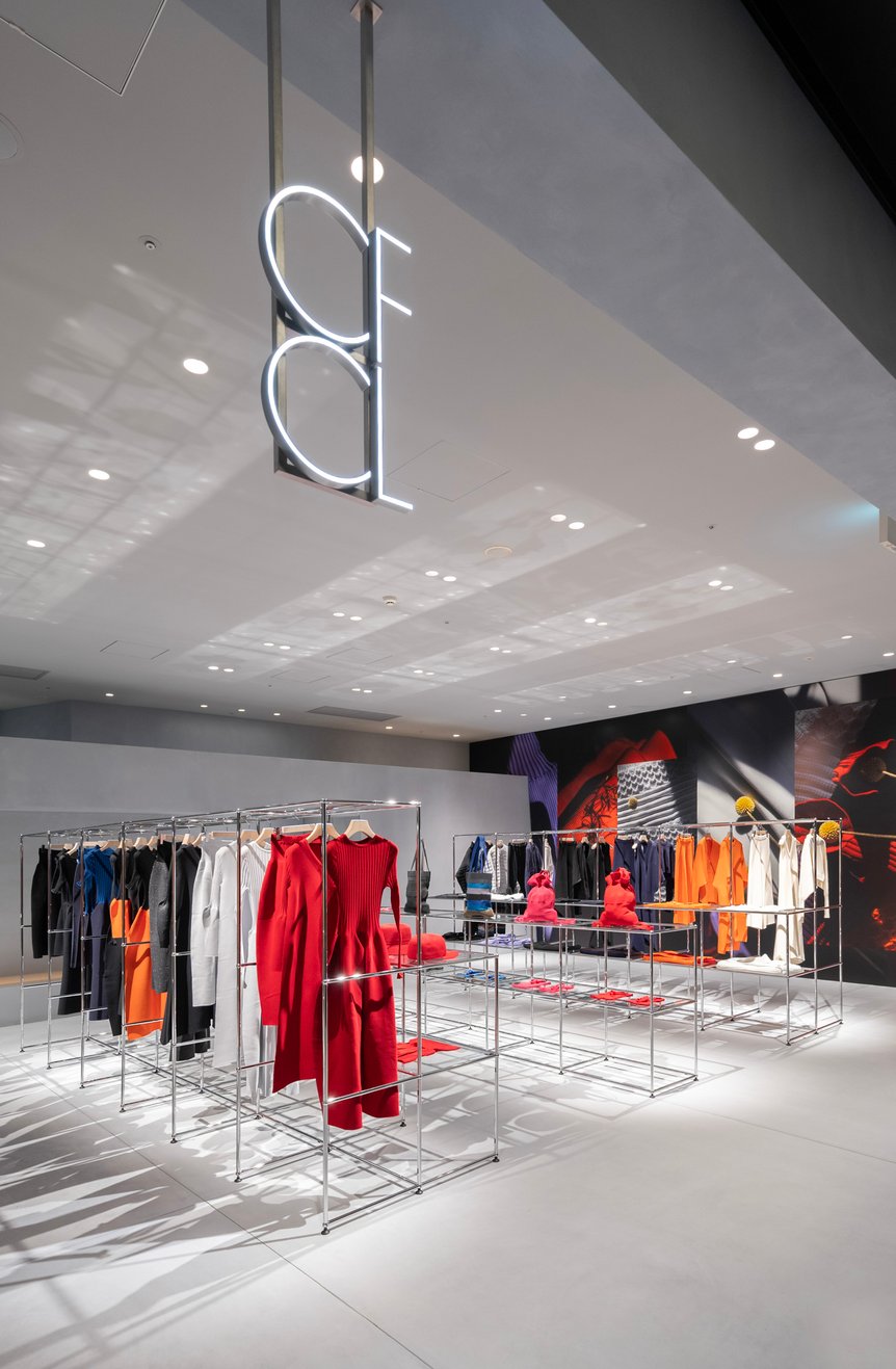 ブランド創立から3年目を迎えた「シーエフシーエル(CFCL)」が、表参道に直営1号店をオープンした。複合施設「ジャイル(GYRE)」の3階に位置し、定番シリーズを含めて最新コレクションの全ラインナップを取り扱う店舗となる。代表兼クリエイティブディレクターの高橋悠介は、ニット22型でデビューしたVOL.1コレクションから型数は5倍以上、生産数も10倍以上となっている現状から成長を実感しながらも「まだまだ届けたい人が多くいる」とし、直営店をCFCLの未来を見据えた拠点と位置付ける。