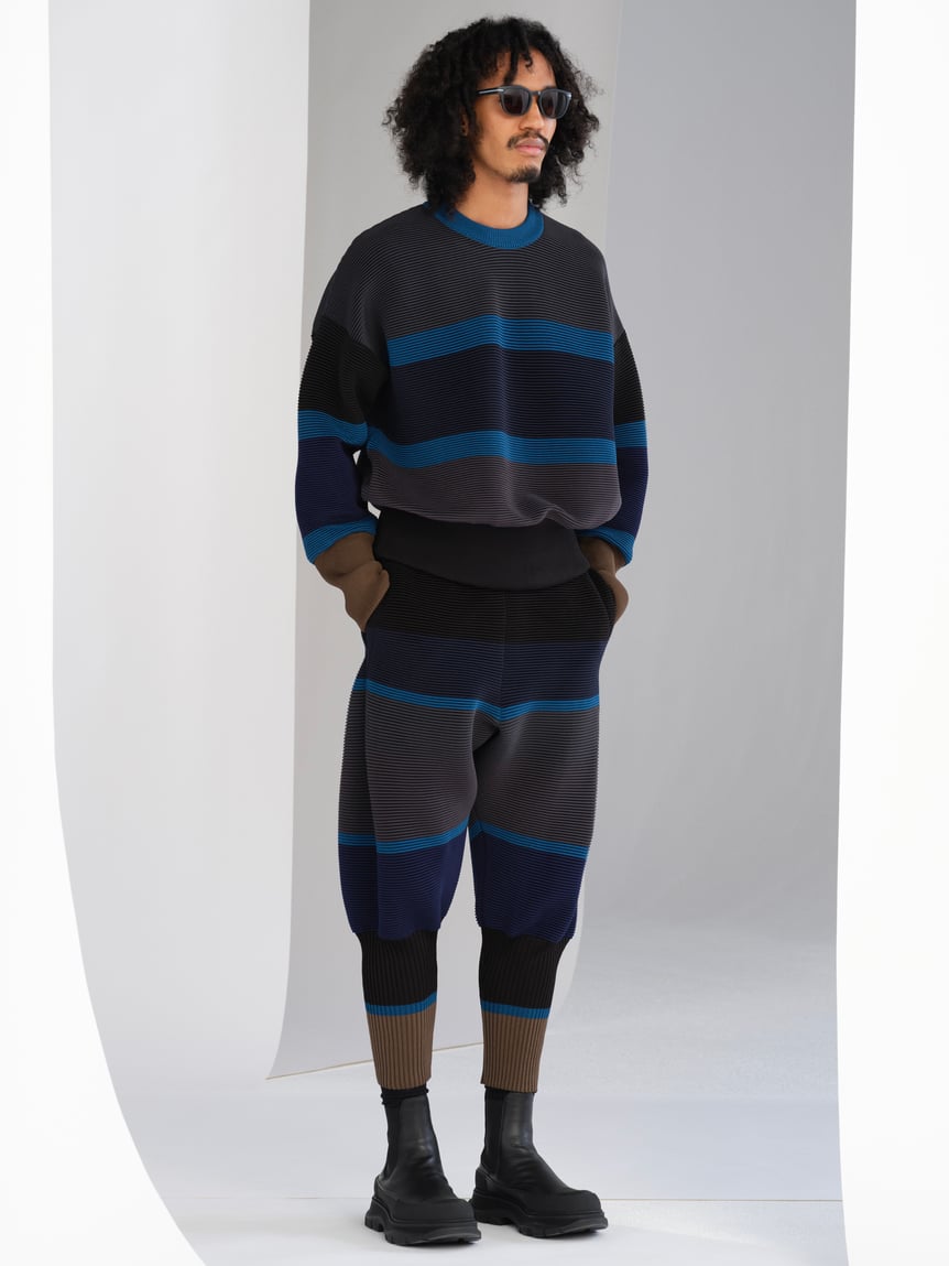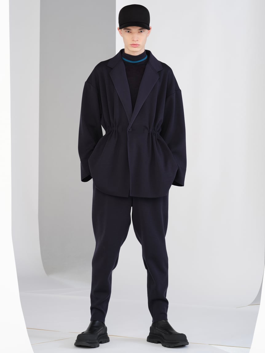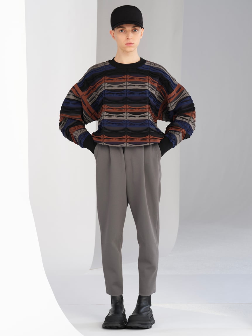 クルーネックのプルオーバーやニットジャケットなど、人気のベーシックアイテムにも捻りが加わり、フォルムがアレンジされた。