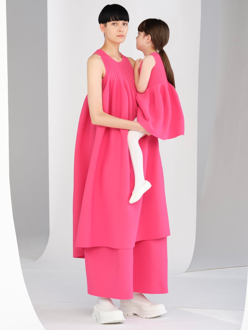 2022-23年秋冬シーズンに向けたVOL.4コレクションは、生活に則した器を意味する「ware」を引用した「Knit-ware」と、人体の形状を超えた個性を描く「Outline」がキーワード。これまで限定的に展開していたキッズウェアがコレクションに加わり、ウィメンズ、メンズ、キッズを網羅。ルックブックには年齢や性別など幅広いモデルを起用し、身体や生活に寄り添うニットをバリエーション豊富に提案する。