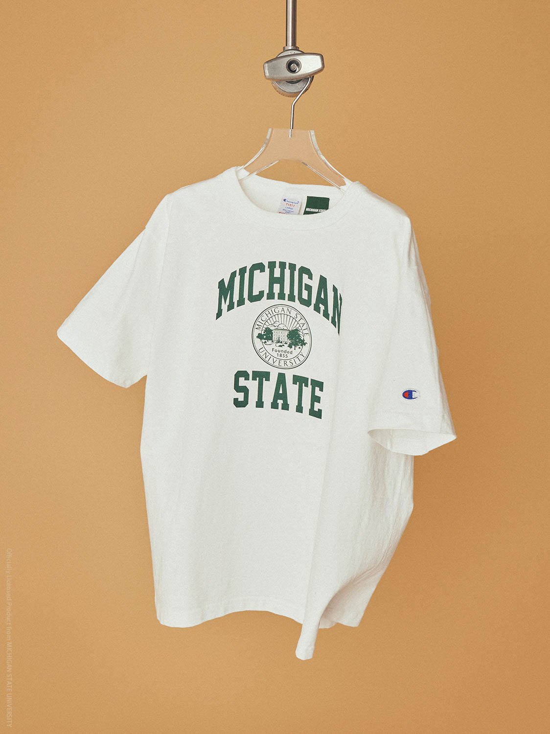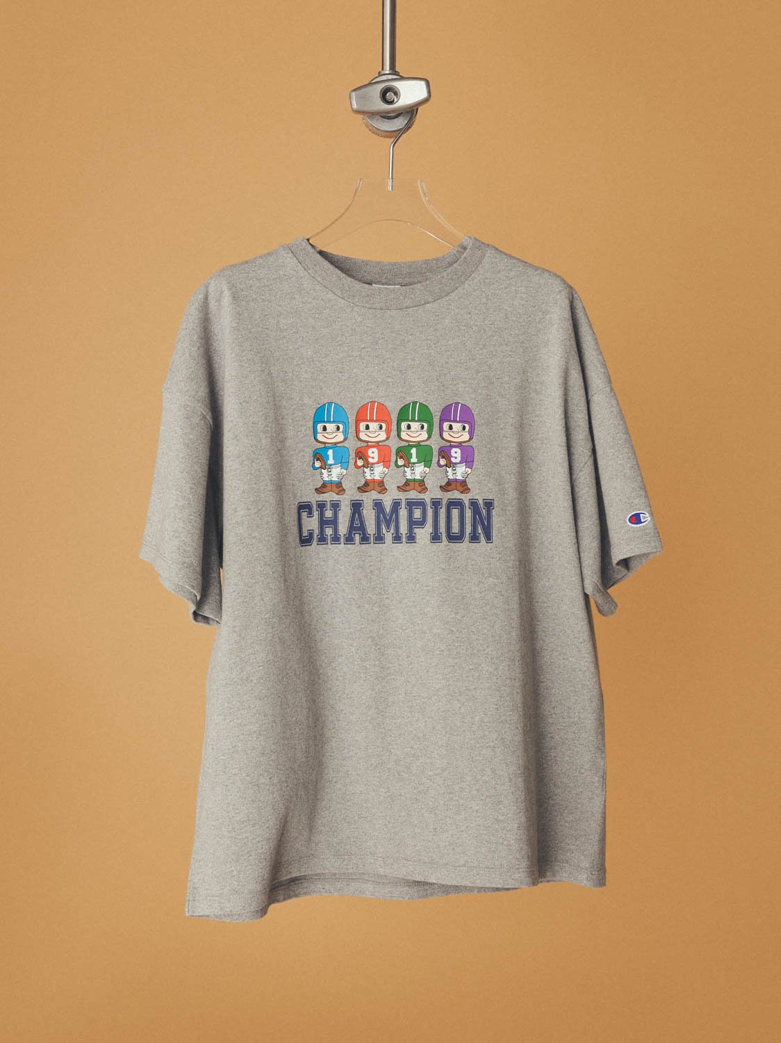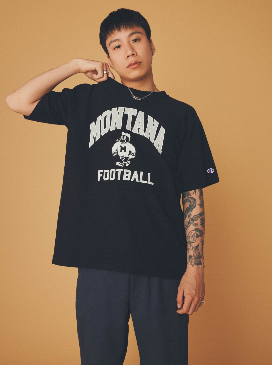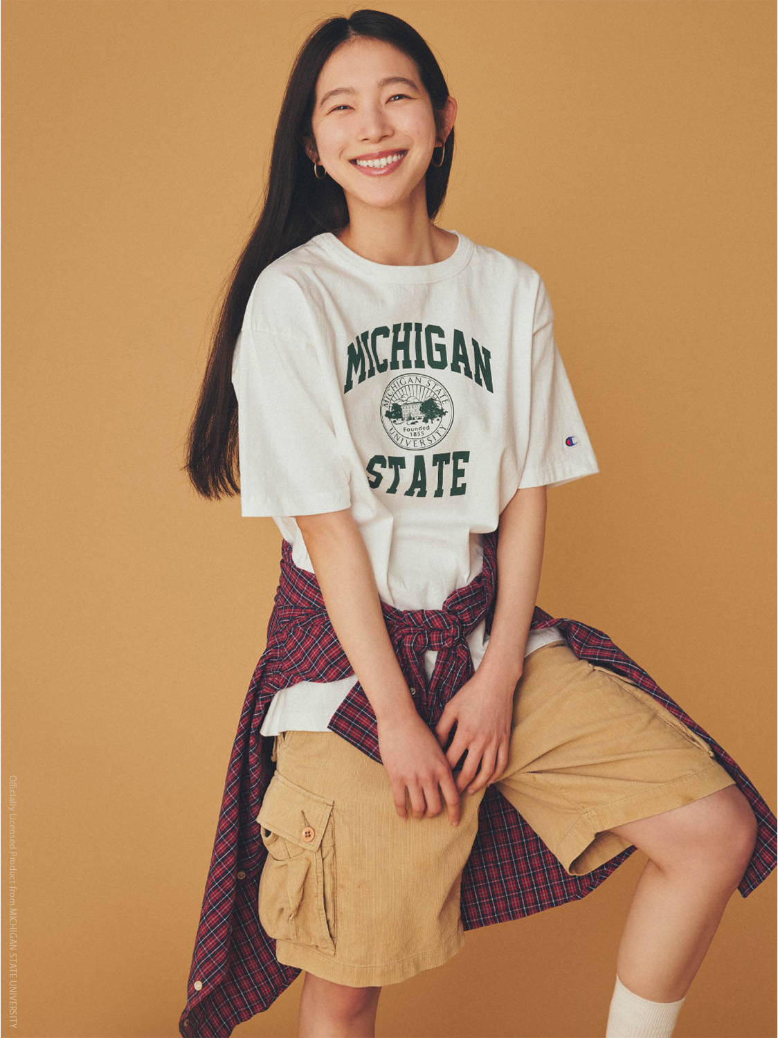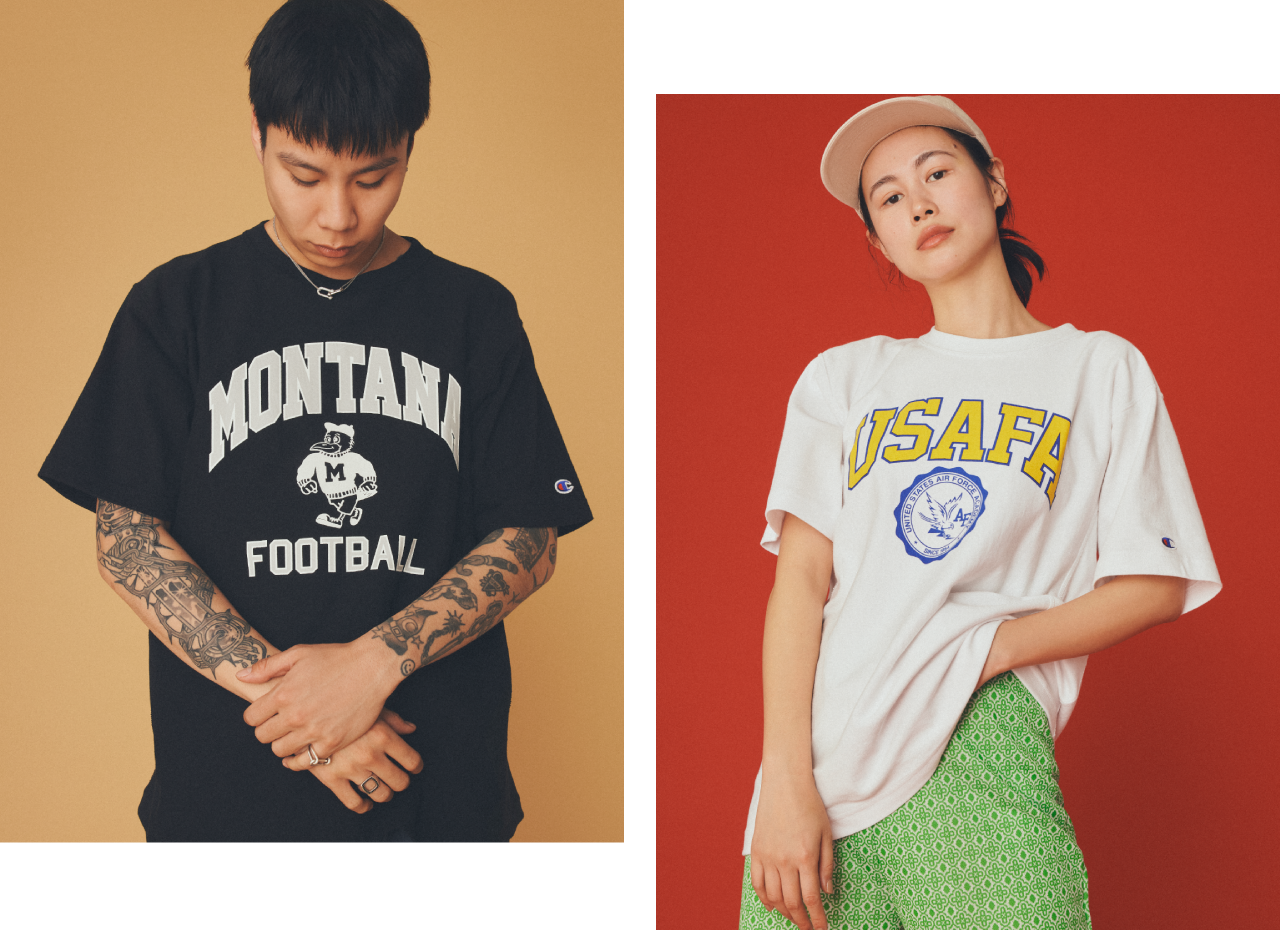 1枚は持っておきたいベーシックなカレッジロゴT。アメリカの有名大学のスポーツ部員たちが、その着心地の良さと機能性に注目しアスレチックウェアとして愛用したことで人気を拡大したChampionは、カレッジアイテムを探すのにもってこいのブランドだ。1930年代から改良を重ね長年に渡り愛され続けるヘビーウェイトTシャツの代名詞「MADE IN USA」の「T1011(ティーテンイレブン)」は、USAコットン特有のドライ感に優れた肌触りが特長。製品洗い加工で当初から着慣れた風合いを演出し、着るほどに味わいを増す1着は、サイドに縫製がない丸胴仕様で、へたりにくくデイリー使いに最適なバインダーネックもポイント。スクールライクなスタイルは、各大学のオフィシャルライセンスロゴが使用されたアイテムで”本物度”を高めよう。
