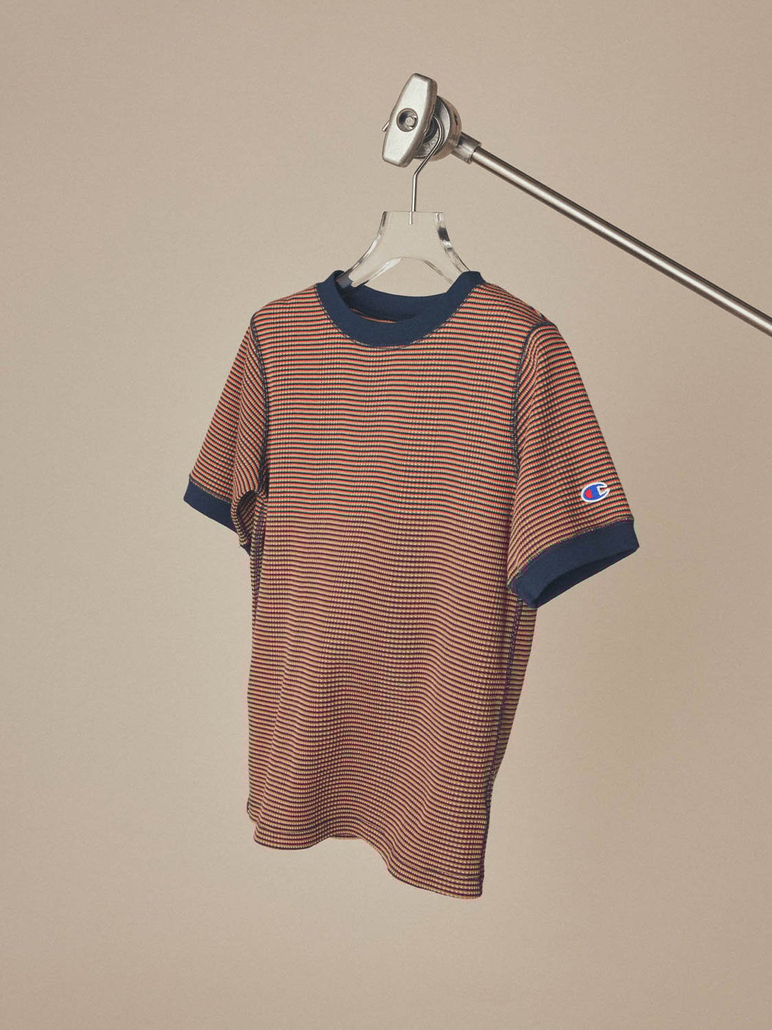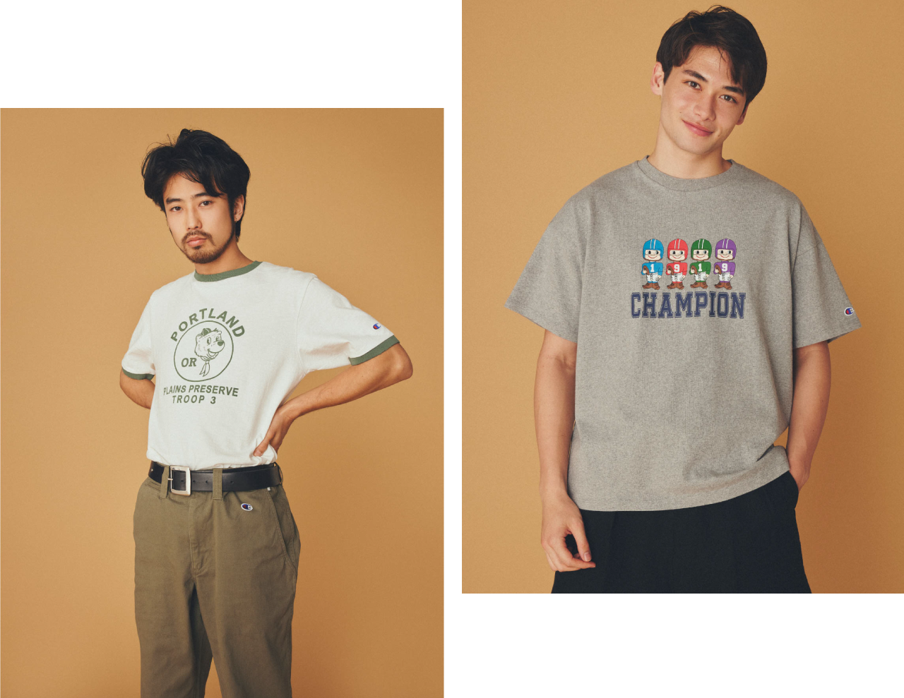 ヴィンテージ市場でも高い人気を誇るChampionを代表する製法「リバースウィーブ®(REVERSE WEAVE®)」。サステナブルなアメリカ綿100%のしっかりとした天竺素材を使用した高い耐久性が特徴の「リバースウィーブ® 9.4オンス ジャージー」からは、ショートスリーブTシャツ2種類を紹介。 本来は縦方向に使われる生地を横方向に使用するリバースウィーブ®製法によって縦の生地の縮みを防ぐと同時に、両脇に「エクスパンションガゼット」を付けることで横の縮みへの影響を少なくし、動きやすさをプラスしたユニセックスで着用可能なリラックスフィットなシルエット。