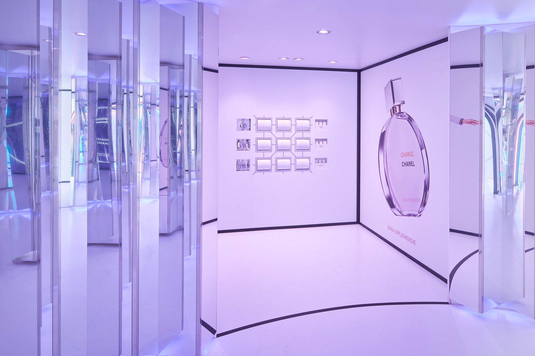 特別イベント会場は、やわらかなヴァイオレットのLEDを灯した外観や、チャンスのフィルムに着想を得たプレイフルでフォトジェニックなメリーゴーランドのインスタレーションが、チャンス オー スプランディドの世界観を表現。会場内は鏡の迷路「ミラー メイズ」の、複雑かつダイナミックな空間が広がり、無数の反射を生みだすことで、“偶然が導く幸運”を体感でき、中ではフープスローゲーム(輪投げ)やスロットマシンといった2つのゲームが楽しめる。ショップエリアでは、香りを試せるフレグランス バーや、1月に発売になったバス&ボディ アイテムの体験スペースやフォトスポットなどでチャンスの世界に没入できる。(2月14日まで東京・表参道 OMOTESANDO CROSSING PARKで開催)