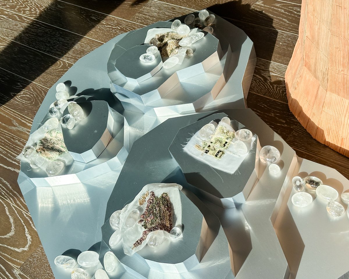 大樹を模した柱が壮大な「フォレスト」は、作品群が森を形成するような空間。幹の中を覗くと、アーティストとメゾンダールの“対話”によって生まれた作品の数々が並ぶ