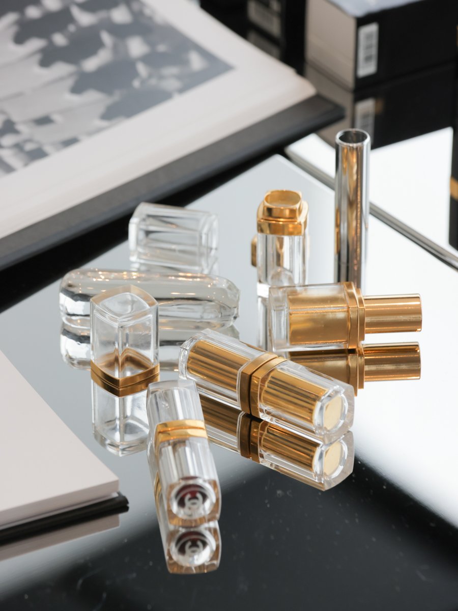 まず最初に、フレグランスボトルからインスピレーションを受けたのです。フレグランスは私たちにとっても大切なアイコンですから。そして、フレグランスの中身を美しく見せるためには透明感が重要であることを思い出しました。私たちプロダクトデザイナーの仕事は、主役であるフレグランスやリップを際立たせること。今回のリップの美しさを最大限に引き出すためにも、透明感をテーマにしようと考えました。
