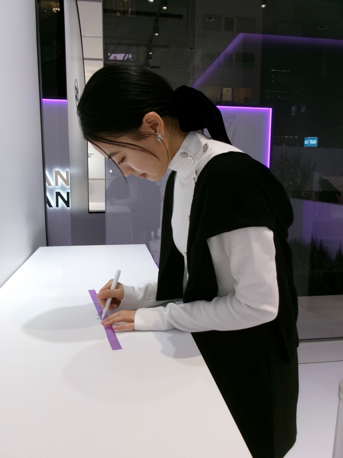 シャネルの特別イベントでリボンに願いを書くコンテンツを体験する上坂