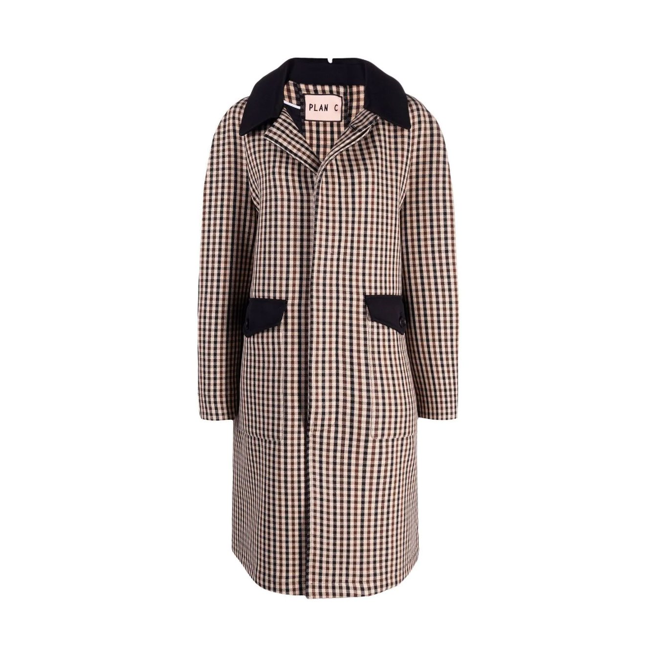 ちょっと渋めなギンガムチェックコートでグッドガールな印象を。マニッシュにもフェミニンにも着る日の気分によって楽しめる「プランC(PLAN C)」のアウターは、日々のコーディネートを楽しみたい大人の女性の強い味方。