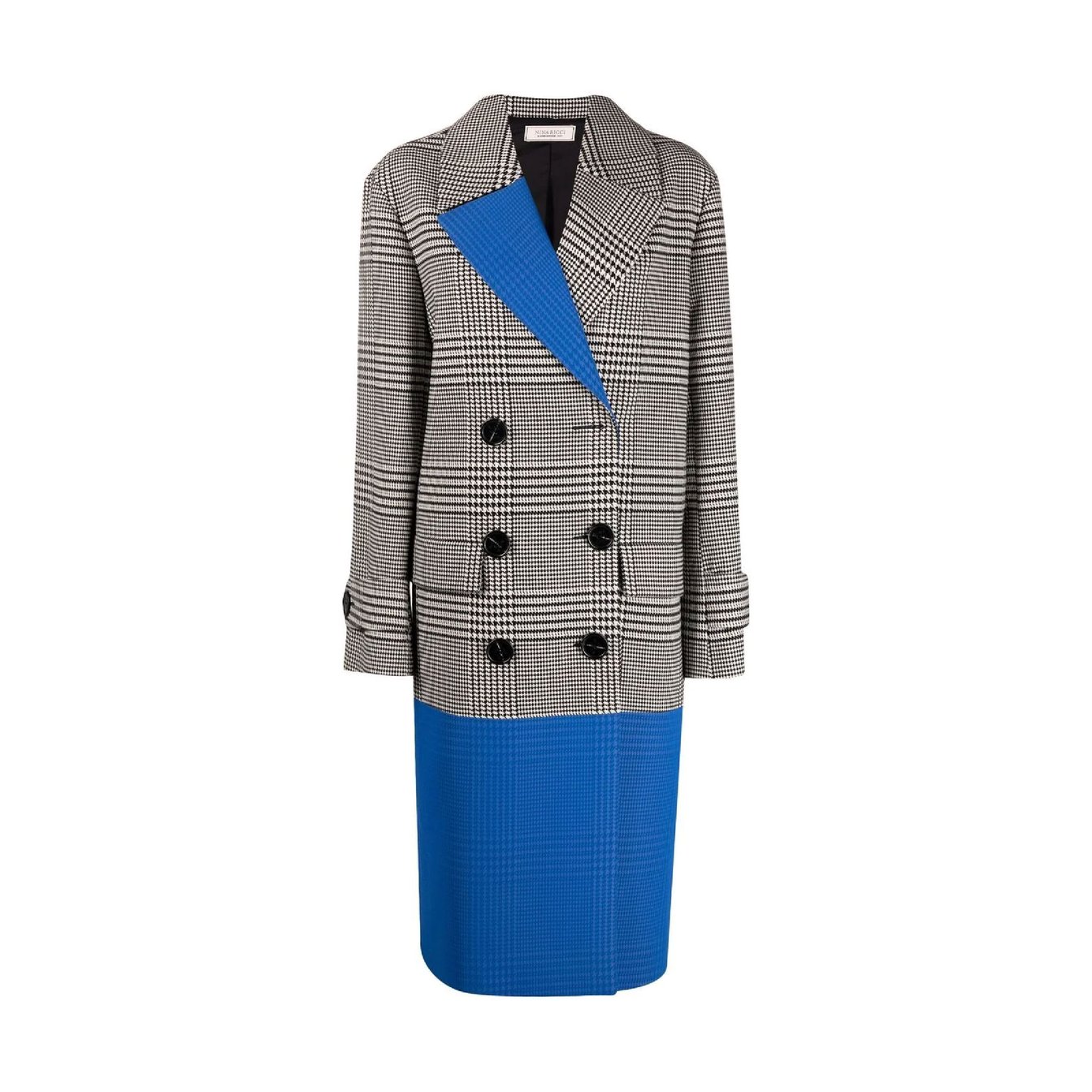 グレーチェックのダブルコートの裾とカラーに差し込まれた鮮やかなブルー。纏うだけでスタイリングをアーバンな表情へと変える「ニナ リッチ(NINA RICCI)」のコンテンポラリーなアウターは持っていて損はなし。