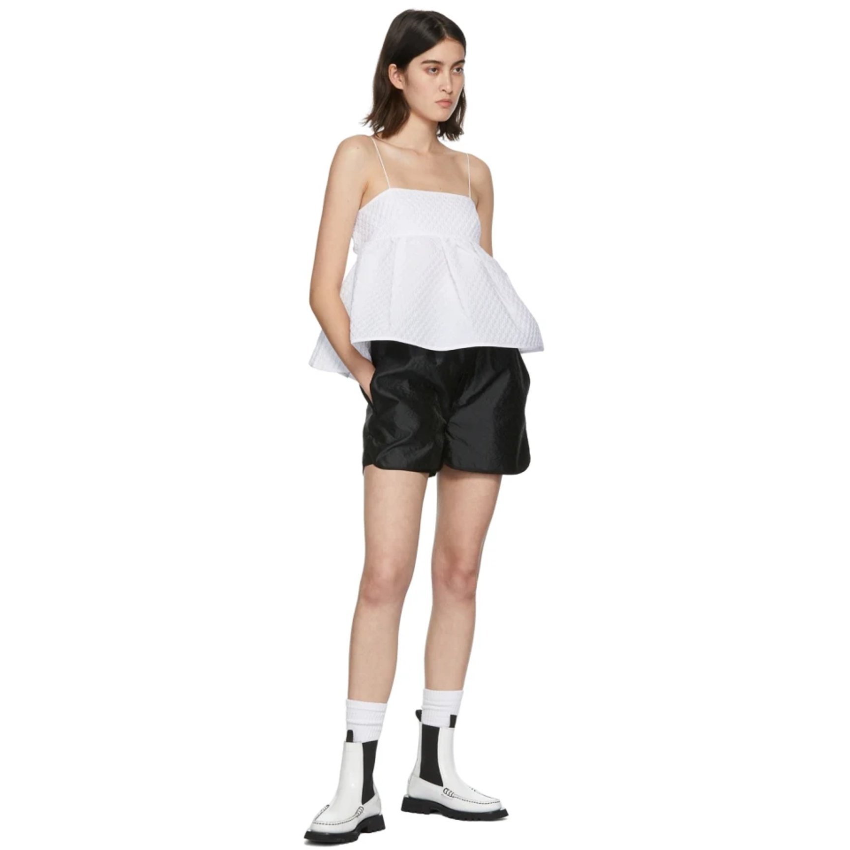 2017年のLVMH PRIZEファイナリストで注目ブランドの一つである「セシリー・バンセン(CECILIE BAHNSEN)」からは個性的なコラボシューズをピックアップ。スペインのバッグ&シューズブランド「へリュー(HEREU)」の職人技が光るモカシンに遊び心をプラスしたモダンなデザインが魅力的。潔いアッパーのホワイトカラーと軽量のラバーソールで足元を軽やかに演出。