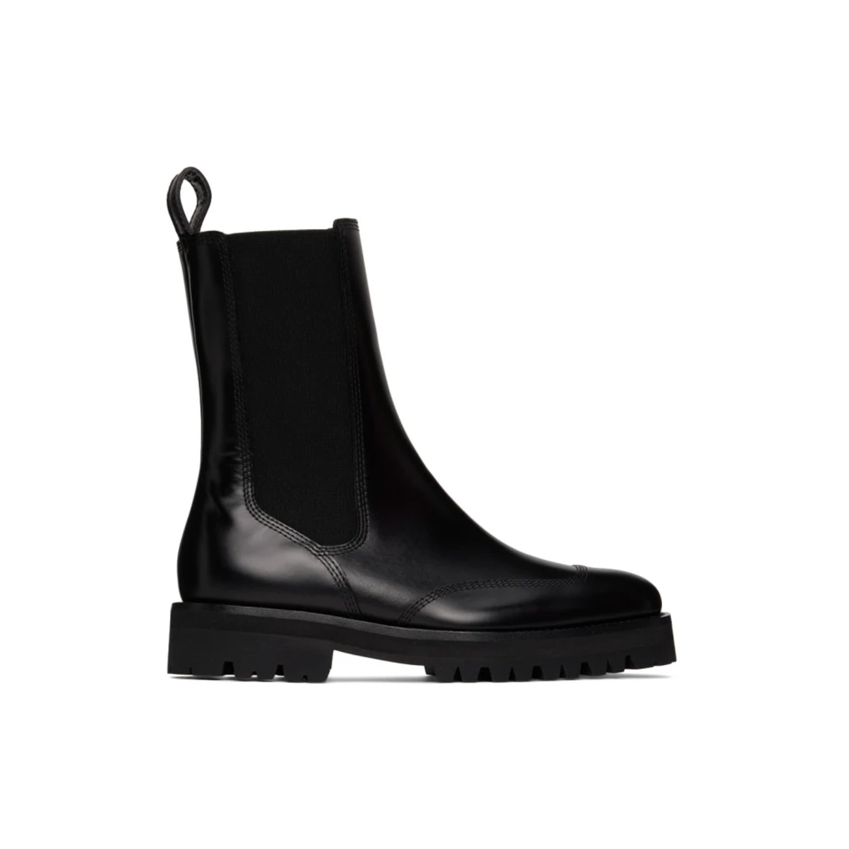 光沢感のあるポリッシュレザーが存在感を放つ「ドリス ヴァン ノッテン(DRIES VAN NOTEN)」のチェルシーブーツ。一見シンプルなデザインながら、アッパーのスクエアステッチがアクセントとなり、足元をよりシックに仕立ててくれます。ロング丈のボトムから覗かせるのもいいけれど、ショート丈のボトムとも好相性なミドル丈はソックスとのコーディネートを楽しめます。