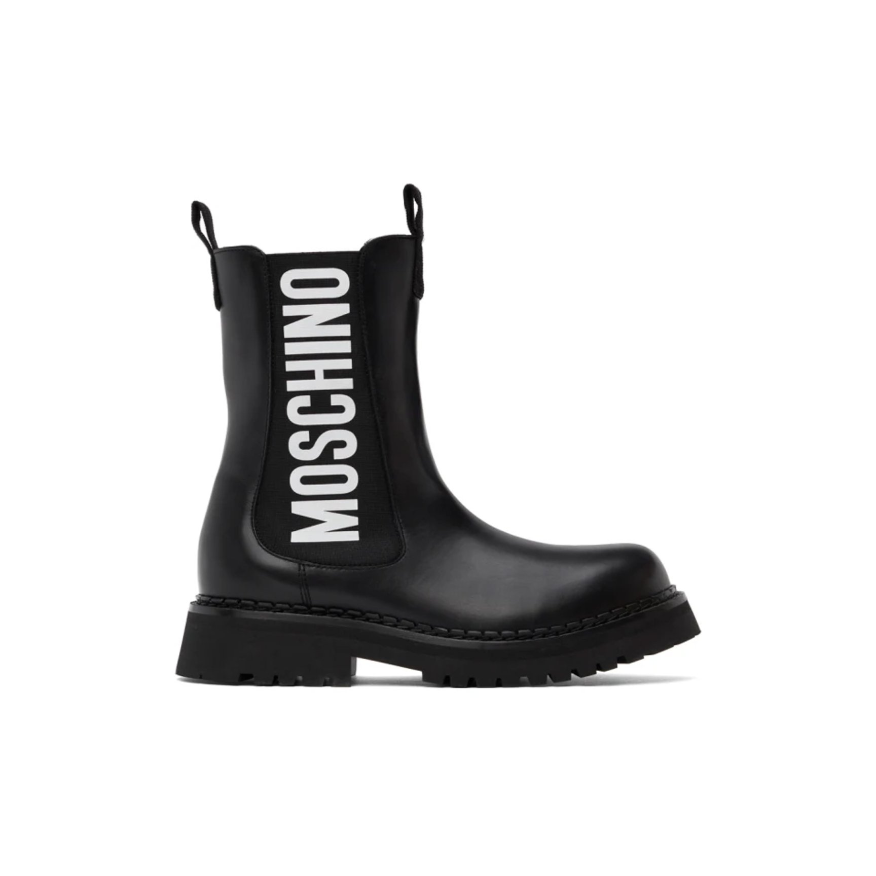 サイドにあしらったインパクトのあるブランドロゴが個性を放つ「モスキーノ(MOSCHINO)」のデザインに視線集中。光沢感のあるカーフレザーとラバーソールで仕立て、ロゴ以外を全てブラックで統一したアンクルハイのチェルシーブーツはシンプルながら可愛さを感じる一足に。着用する日が楽しみになるこのキッチュなデザインに心奪われそう。