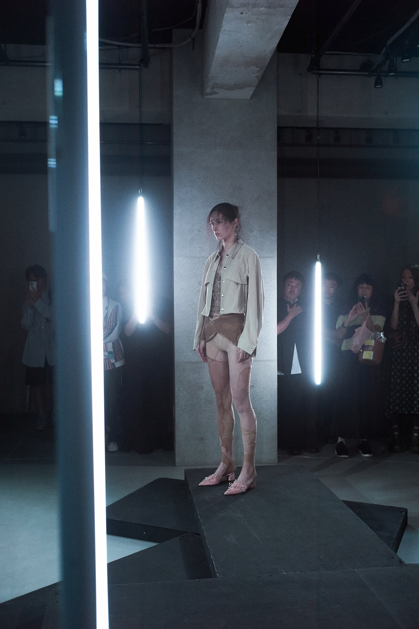 ショーの会場は、これまでのバレエカンパニーのような演出とは一転して、「アンダーグラウンド」な空気を漂わせた(会場は、代官山の建物の地下だった)。無機質でこじんまりとした空間の中央に、「ステージ」らしきスポットがあり、吊り下げられたむき出しの蛍光灯にぼんやりと照らされたモデルが、次々とやってくる。