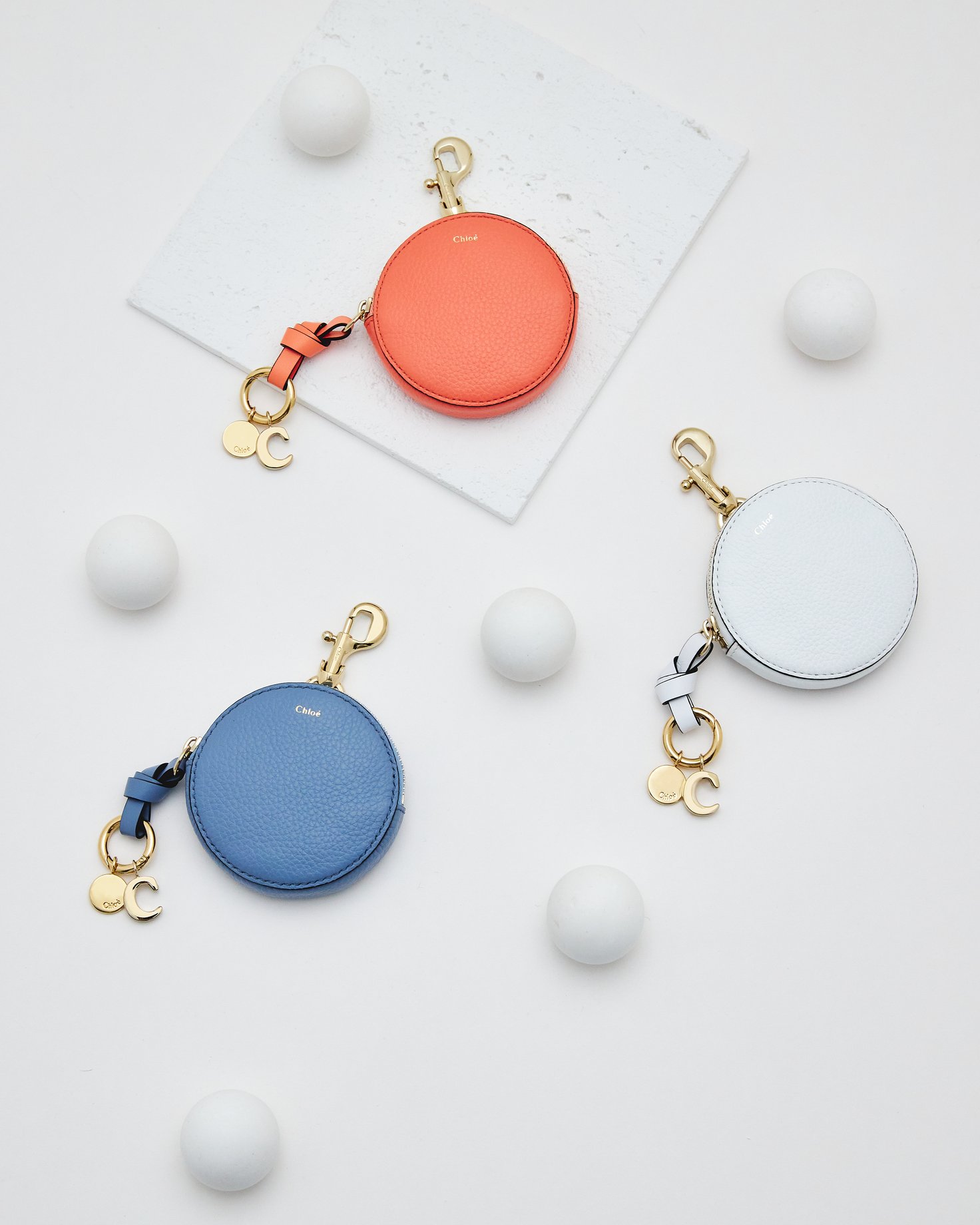 ラウンドシェイプが愛らしいスモールラウンドパースは、コインケースやアクセサリーケースとしても活躍するキュートなデザイン。さらに、ゴールドのフックをバッグのハンドルやベルトに掛ければ、チャームとしても活用できる。こちらもアルファベットチャームをプラスして、大切な人へのホリデーギフトにするのもおすすめ。いつもの装いに、ポップな遊び心をプラスして。