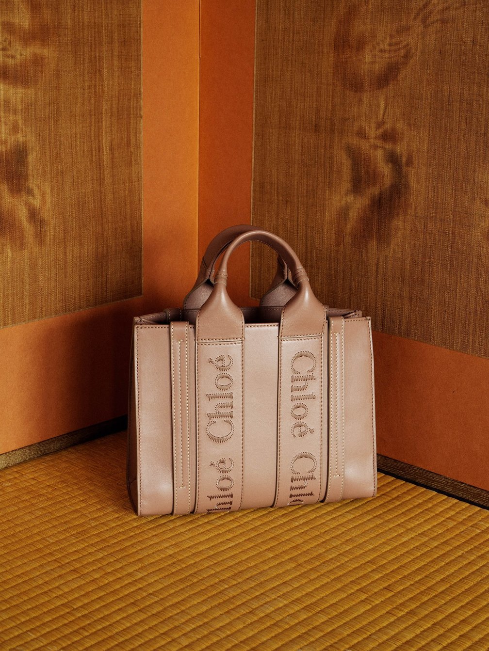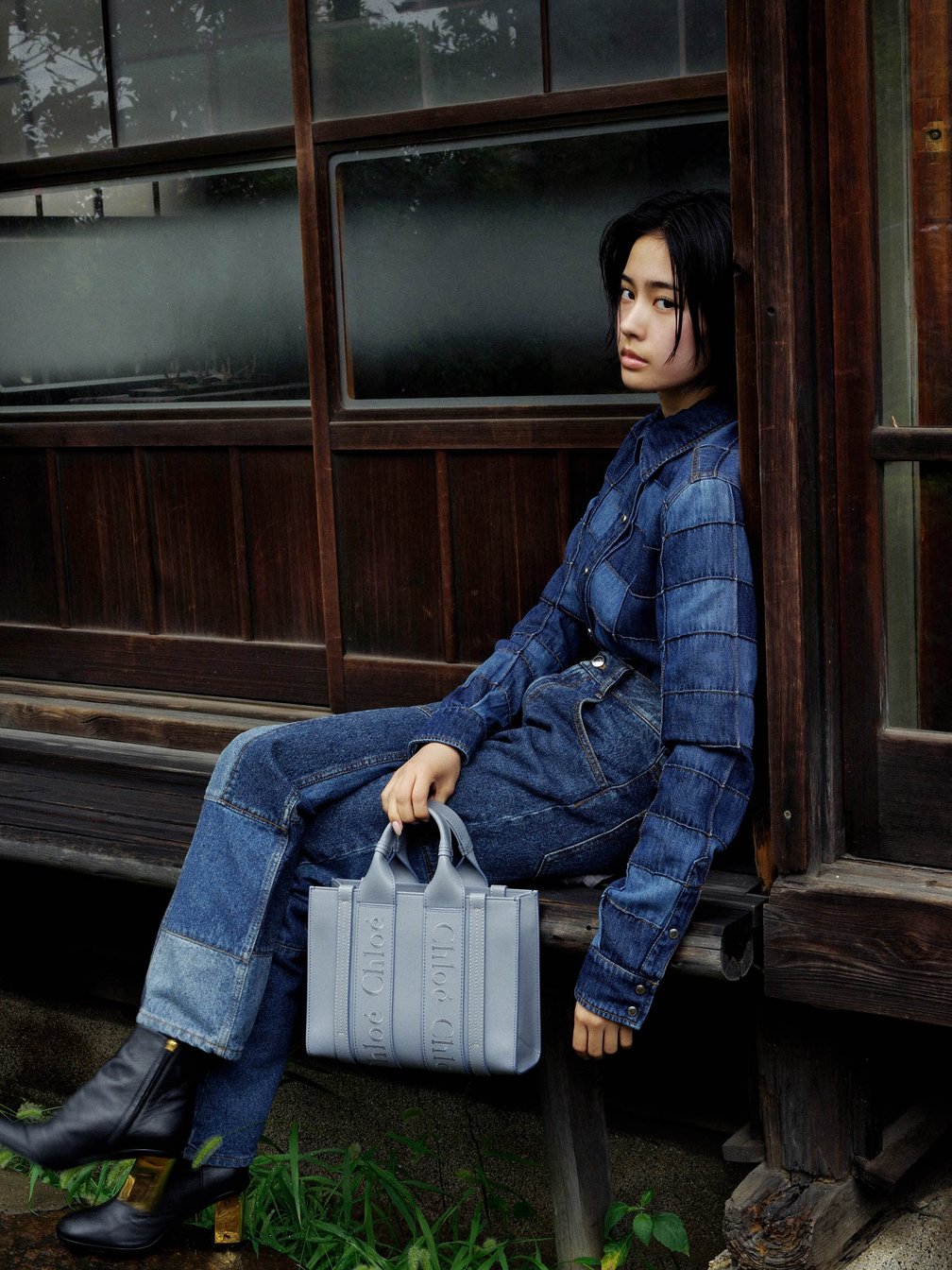 大きくロゴがあしらわれたリボンがアイコニックな「クロエ(Chloé)」の人気シリーズ「ウッディ(Woody)」。2020年に登場して以来、様々なサイズや素材で展開され、ブランドのアイコンバッグとしてその地位を確立している。そんなシックなムード漂うレザー素材のトートバッグを手に持ち、クロエの最新コレクションに身を包むのは、19歳の女優 安斉星来。秋の気配が近づく東京の下町で、情緒あふれる日本建築とクロエのモダニティが織りなす心地よいコントラストを、写真家の鈴木親が描き出す。