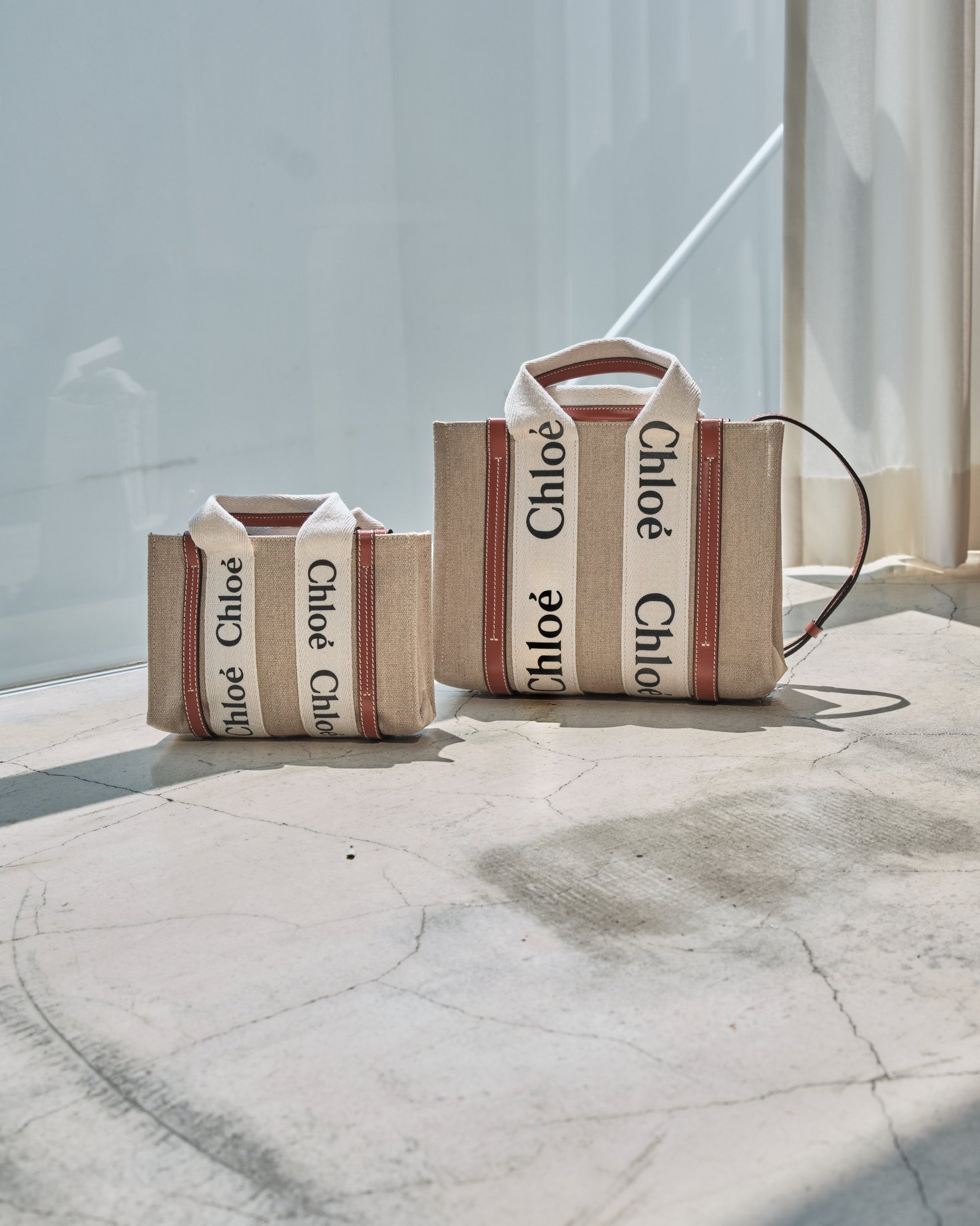 「クロエ(Chloé)」の人気シリーズ「ウッディ(Woody)」から、ミニサイズのトートが新登場! 環境に優しいリネンキャンバスにシャイニーカーフスキンの飾り紐をあしらった大人カジュアルなデザインが、サマーシーズンにぴったり。ブランドロゴ入りのリボンを大胆にあしらったサンダルやミュールも、バカンスムードを盛り上げてくれそう。お気に入りの「ウッディ」と共に、忘れられない夏の思い出を紡いで。