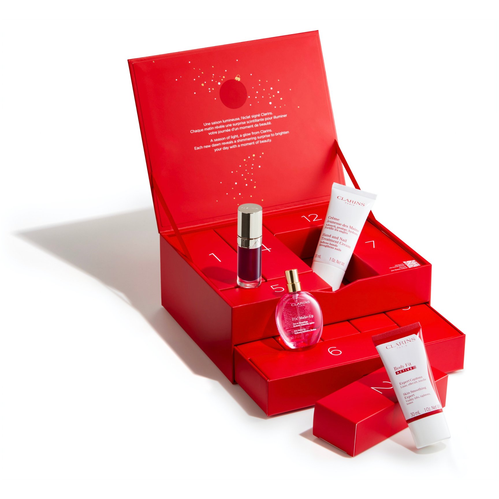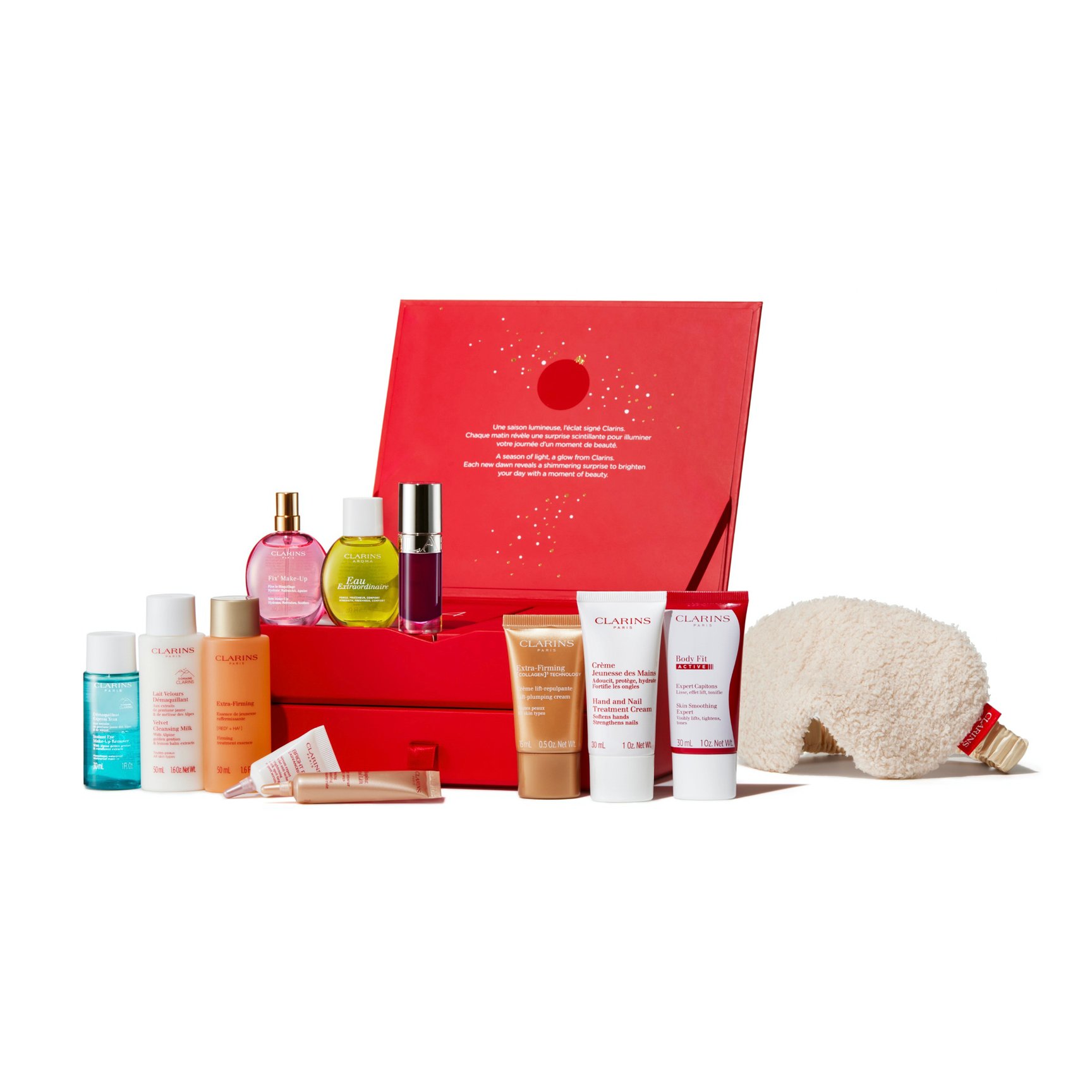 今年のアドベントカレンダーは、クラランスの人気アイテムが詰まったホリデー限定の特別感あるラインナップ。スキンケアからメイクアップ、ボディケアまで、12日間異なるアイテムとの出合いを楽しむことができます。現品サイズのアイテムも。