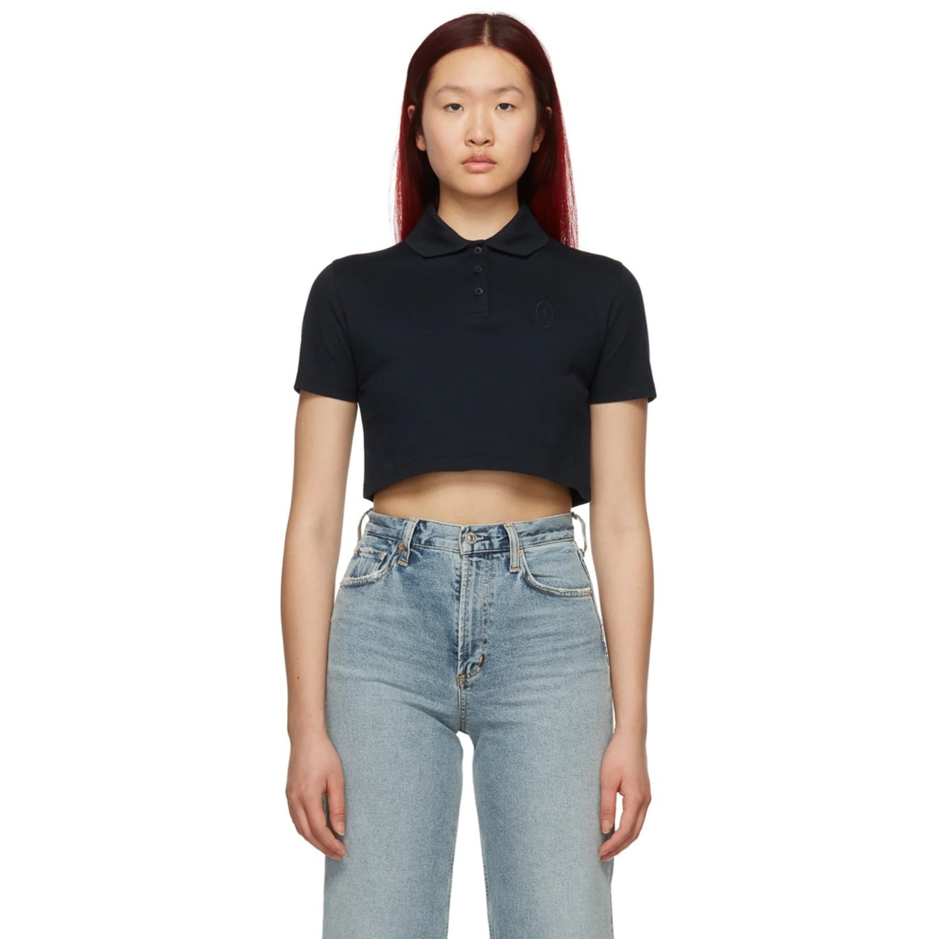 SAINT LAURENTネイビー クロップド モノグラム ポロシャツ¥45,000(関税・消費税込)