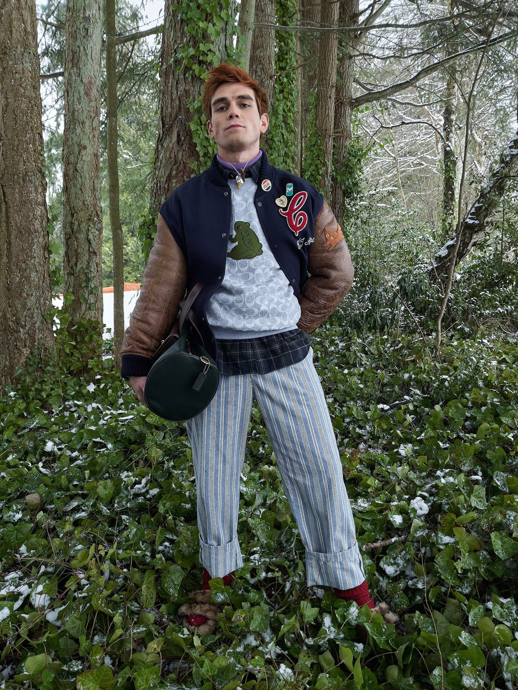 これに続き、ジェニファー・ロペスがBlondieの「Call Me」を熱唱するMTV風の番組や、KJ・アパ(KJ Apa)がキャスターを務め、カイア・ガーバー(Kaia Gerber)がゲスト出演するニュース番組、コール・スプラウス(Cole Sprouse)が枕のような新作バッグを魅惑的にアピールするピロートーク番組など、コーチと関わりの深いセレブリティが出演するエンターテインメントが続く。