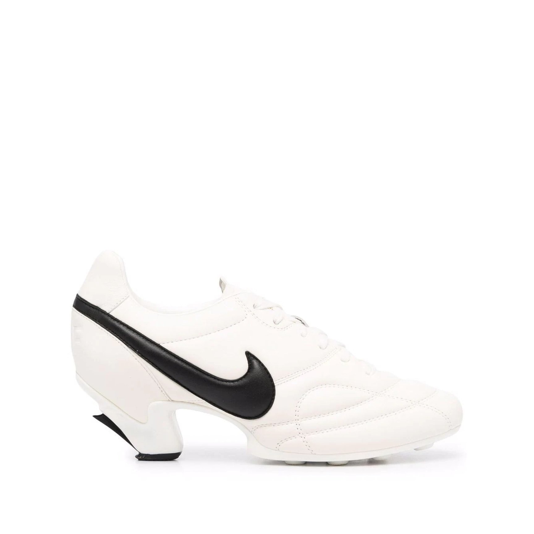「コム デ ギャルソン(COMME des GARÇONS)」と「ナイキ(NIKE)」が2018年春夏に発表したヒールスニーカーをアップデート。疾走感のあるサッカースパイクをベースにした、ミニマルかつユニークなデザインです。