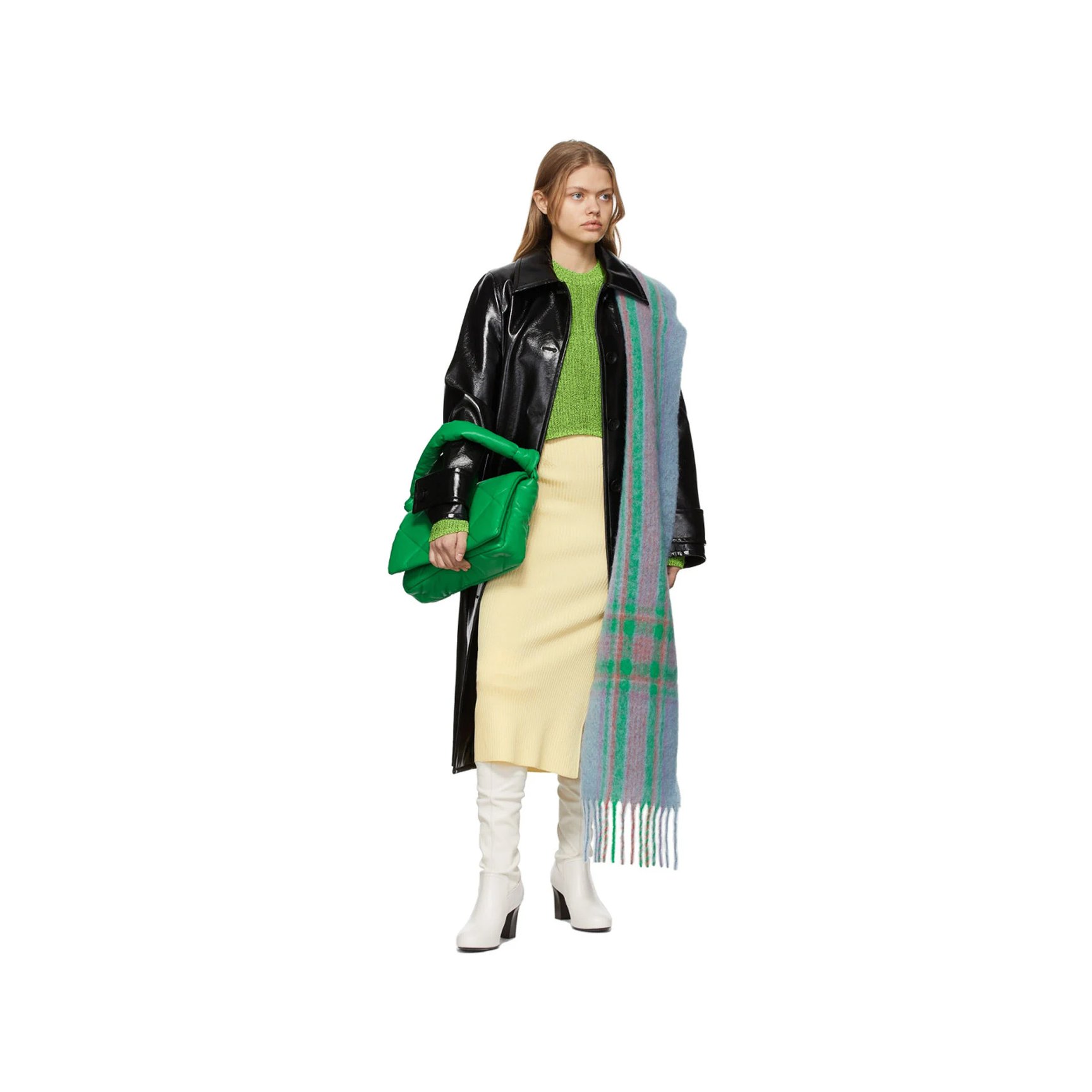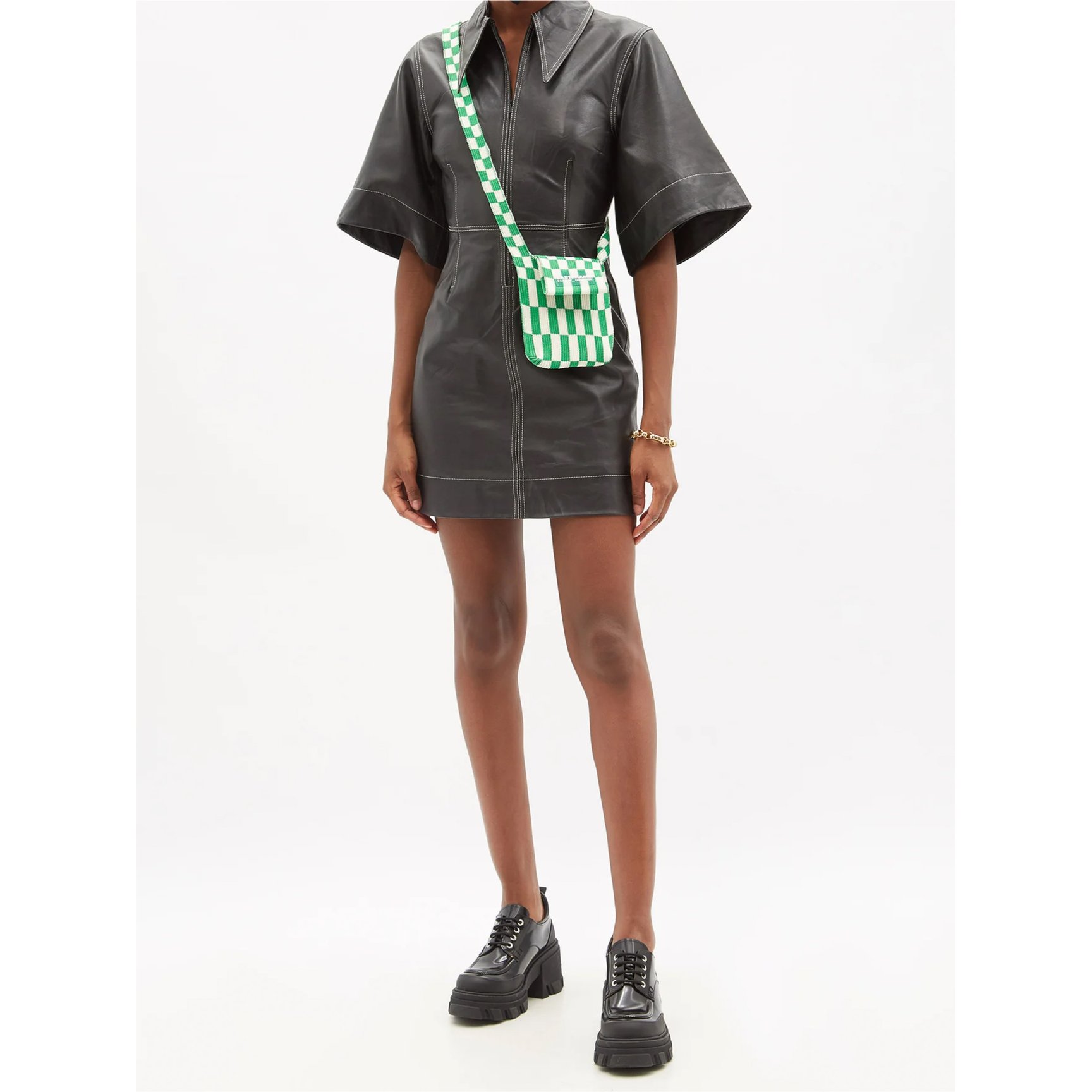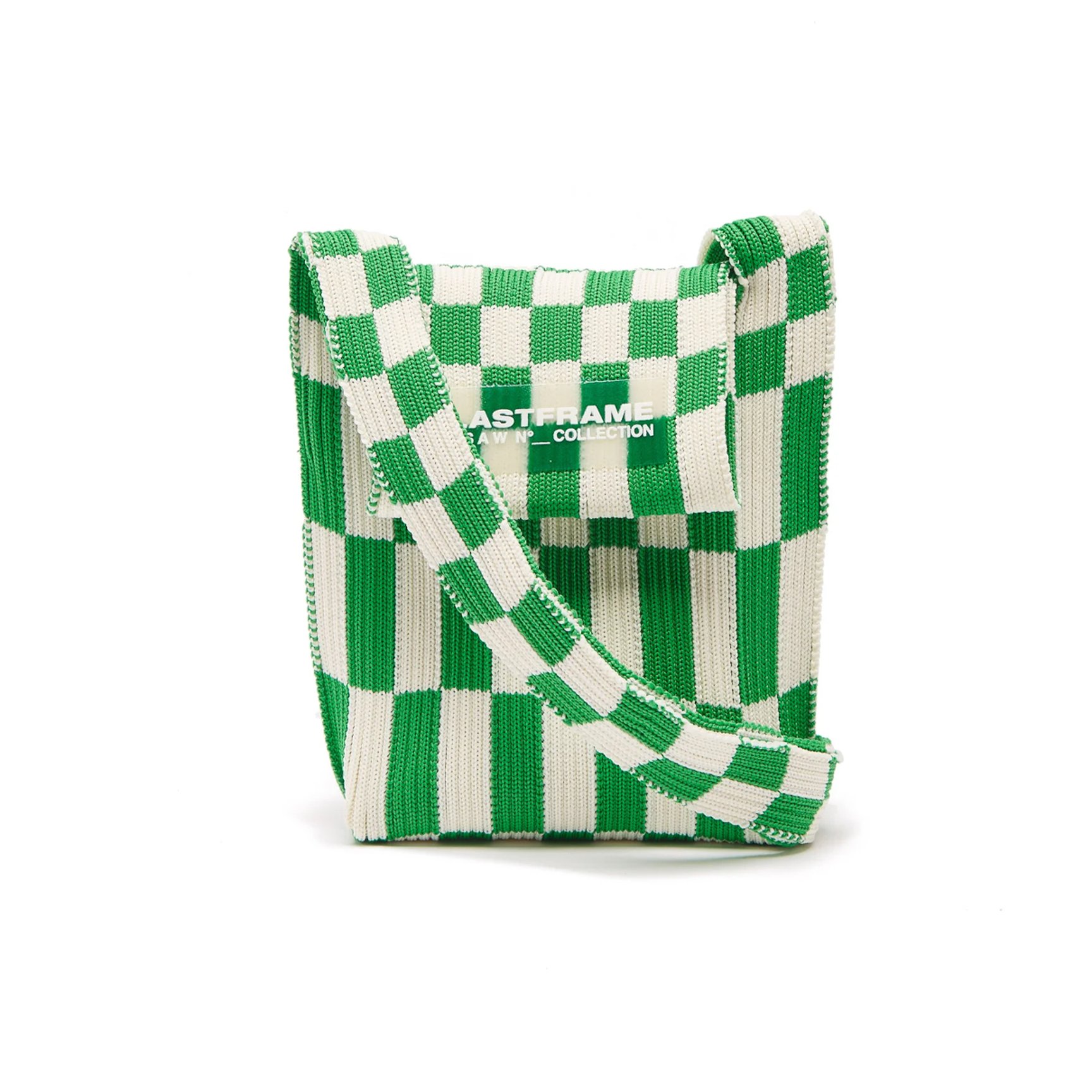 グリーン×ホワイトの市松模様がアクセントとして活躍してくれるミニバッグは「ラストフレーム(LASTFRAME)」のもの。特殊な編み機を用いているため、フレキシブルでしなやかなフォルムが実現。手ぶら派の方におすすめの、ショルダー型ミニバッグです。