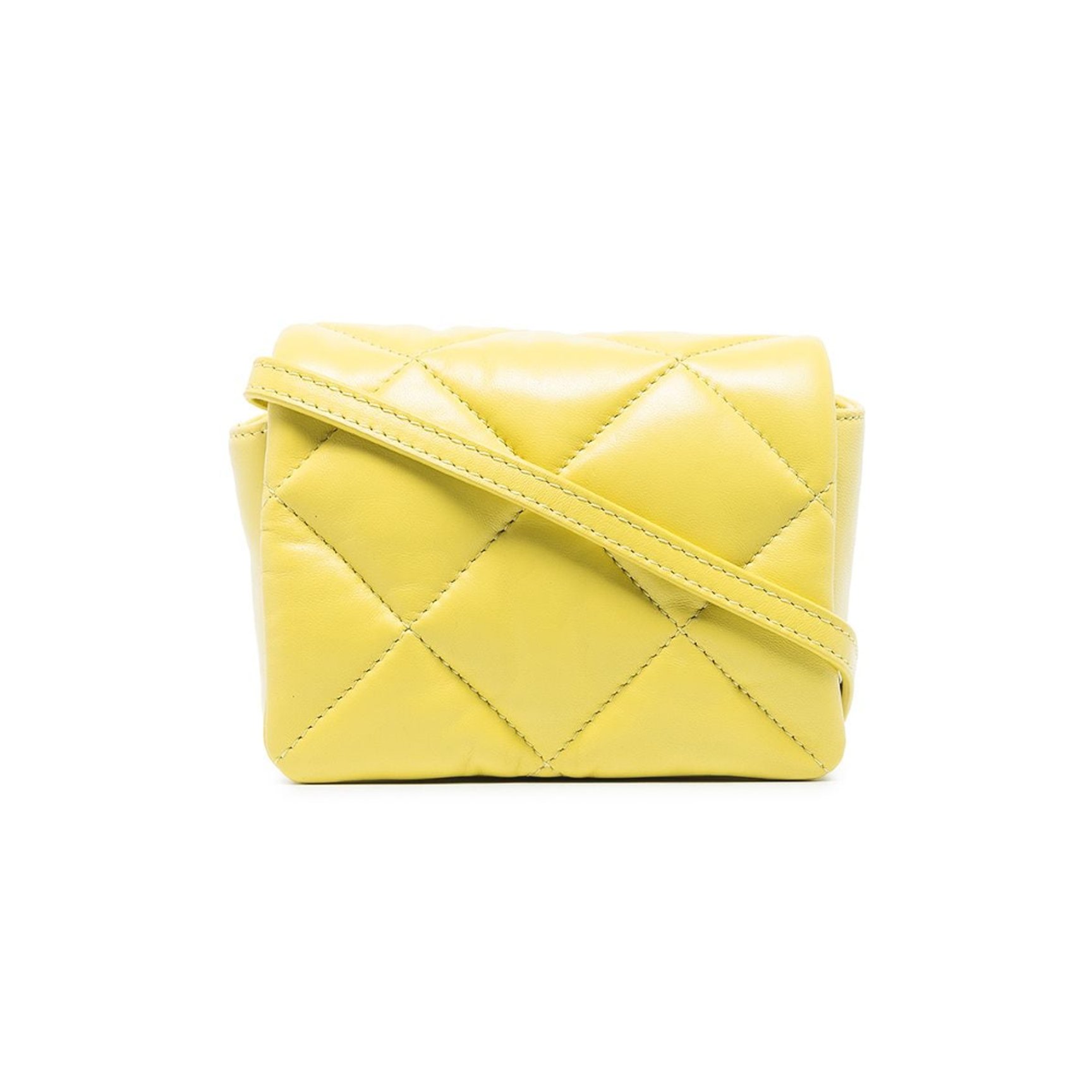 「スタンド スタジオ(STAND STUDIO)」のミニバッグ。柔らかいイエローカラーが女性らしさを引き出し、プラスされたゴールドトーンのチェーンがクールな印象も与えます。そのほか果実のように鮮やかなオレンジカラーと、使い回しやすさ抜群の安定ブラックカラーもラインナップします。