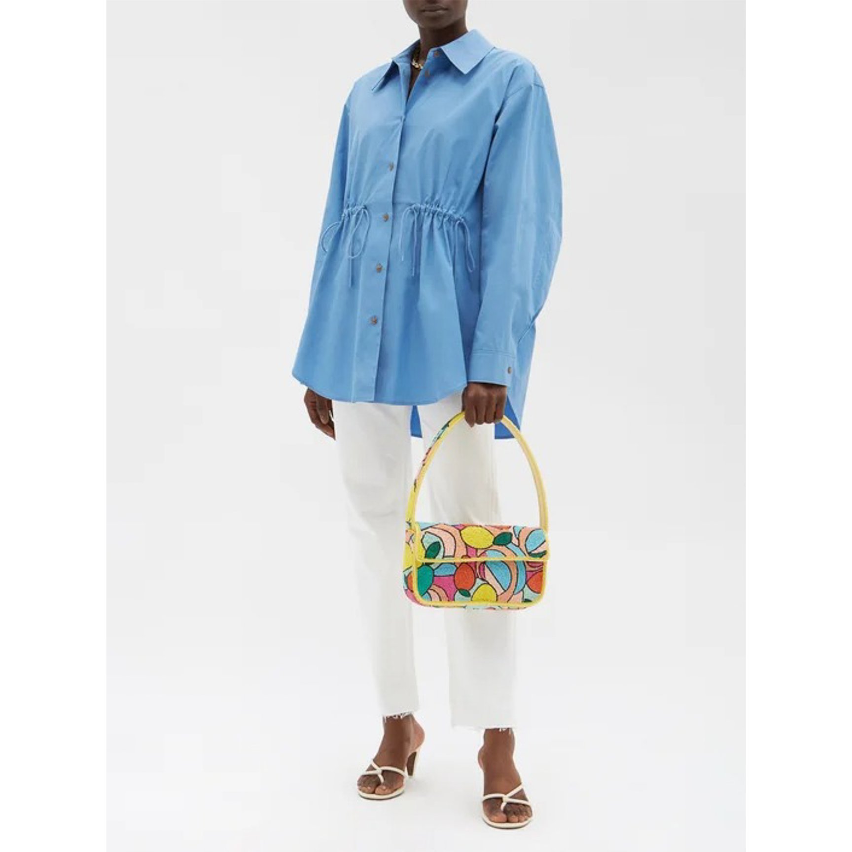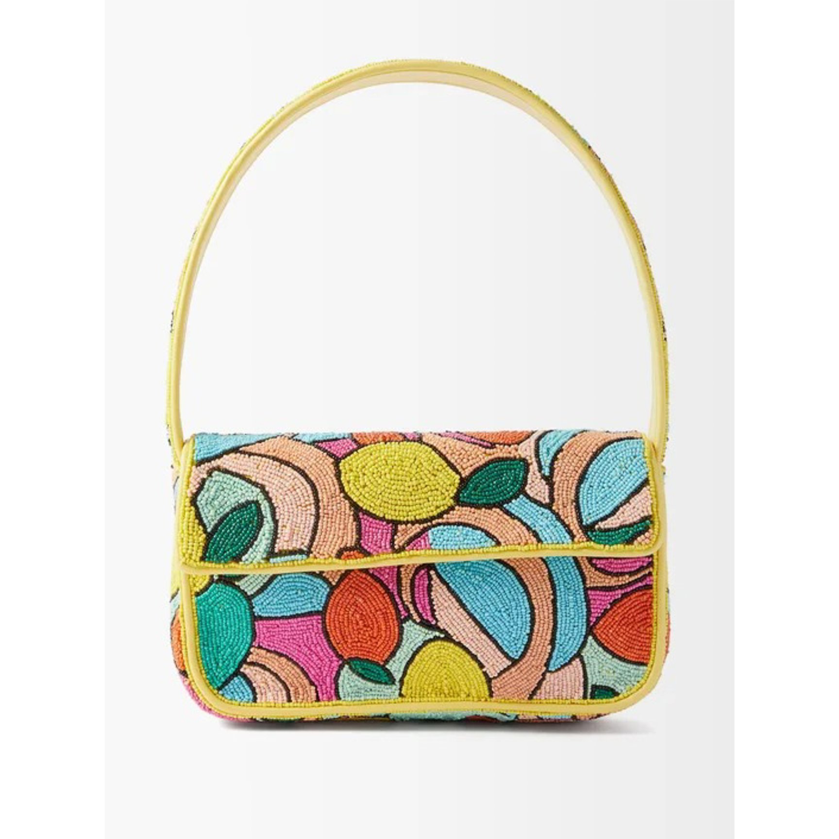 「スタウド(STAUD)」からは、カラフルなフルーツモチーフがステンドグラスのような美しさを放つビーズバッグをチョイス。ビーチやレジャーにも似合う、ハッピーオーラ満載なカラーパレットが夏のスタイリングにぴったり。