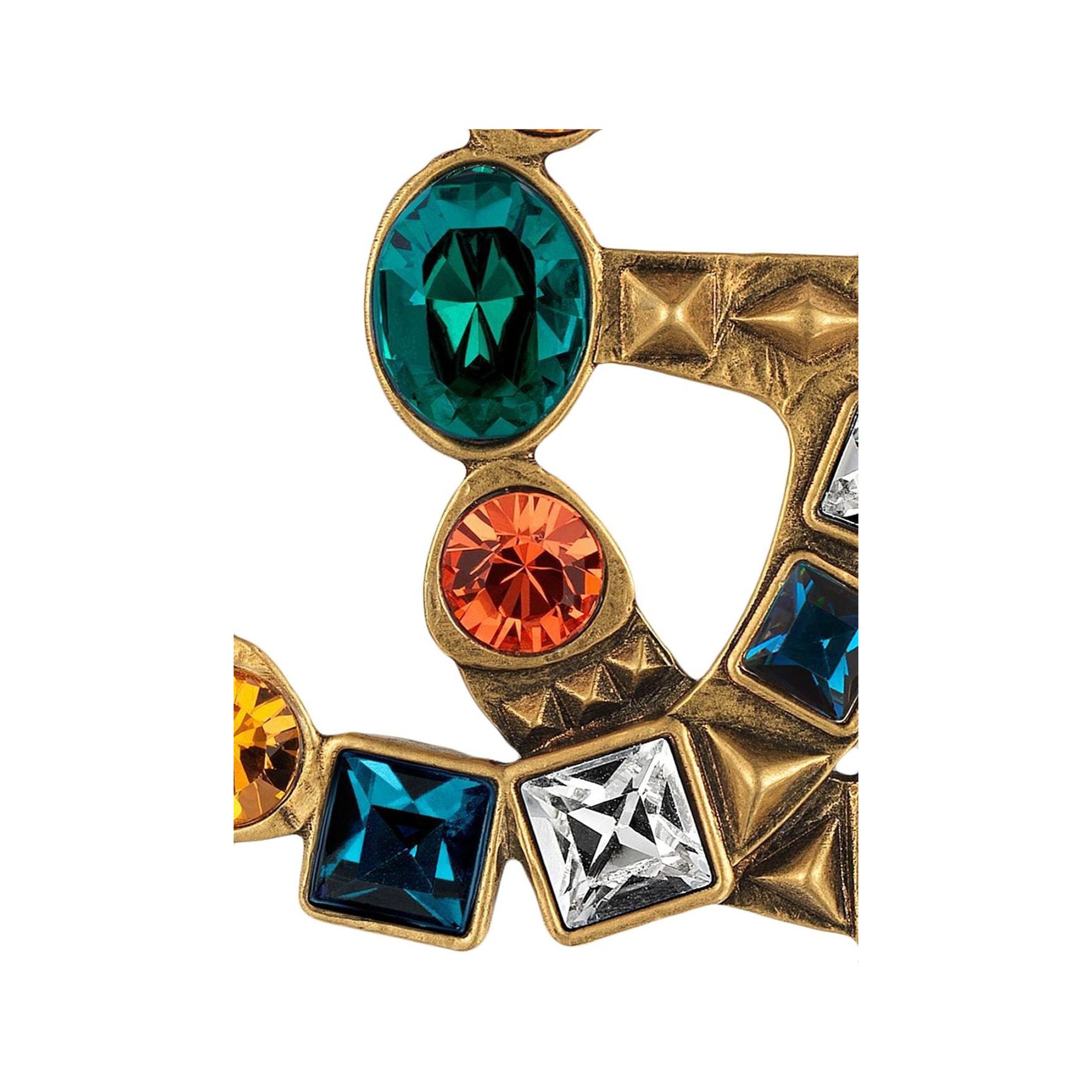 「グッチ(GUCCI)」の大ぶりブローチは、定番のダブル「G」モノグラムのデザイン。シェイプに大きさ、カラーもさまざまなクリスタルが散りばめられており、見ているだけで楽しくなれそう。ヴィンテージ風のジャケットの胸元に合わせたいアイテム。