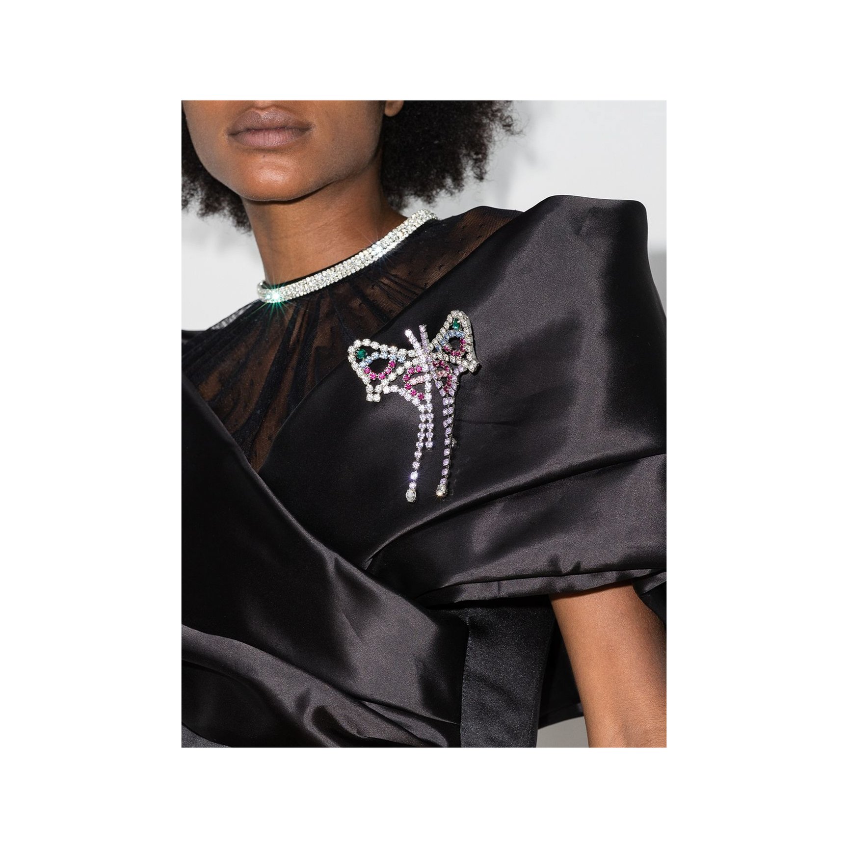 きらめくクリスタルは、パーティーシーンにもぴったり。NY発「エリア(AREA)」のバタフライブローチなら、動くたびに揺れるドロップモチーフで周囲の視線も集められそう。
