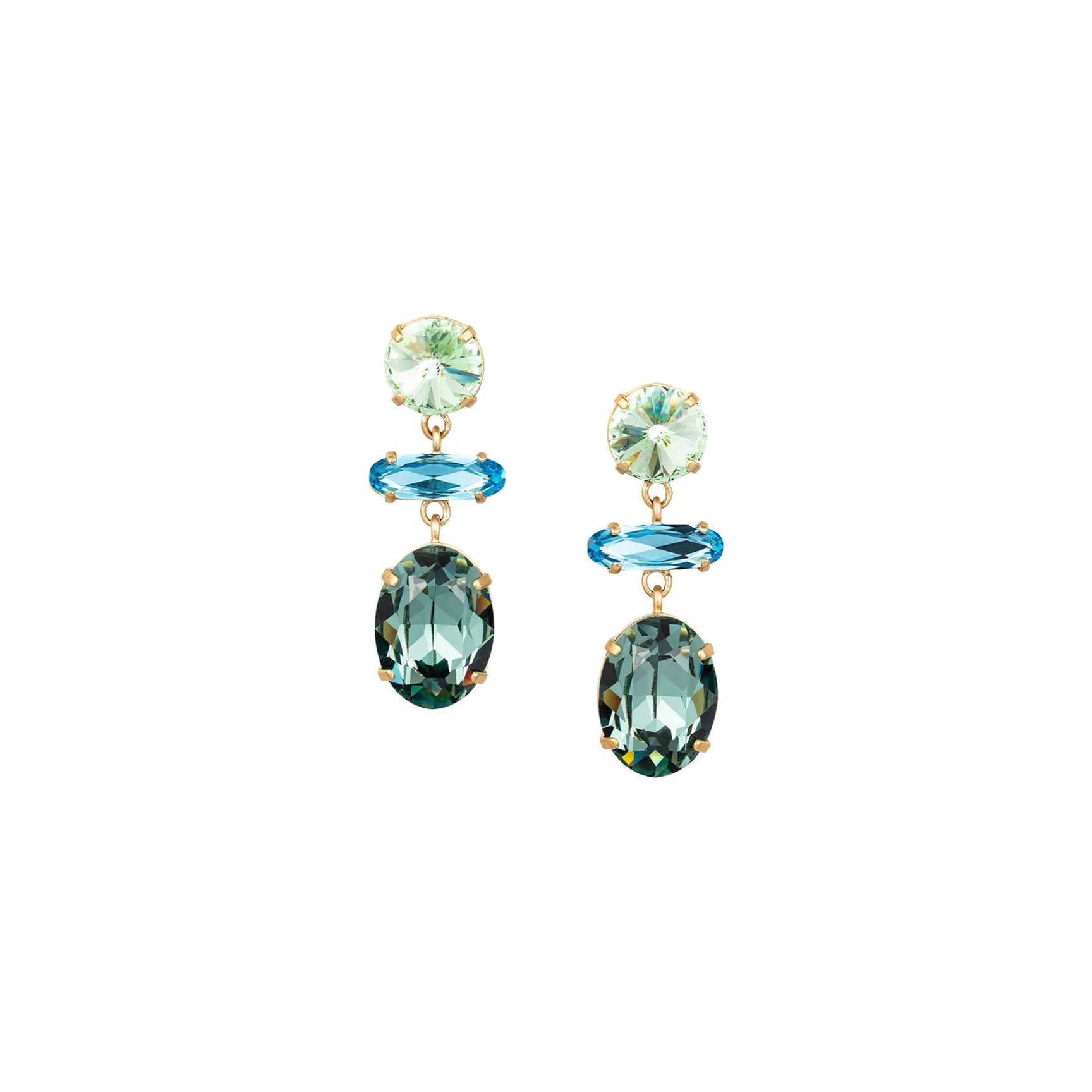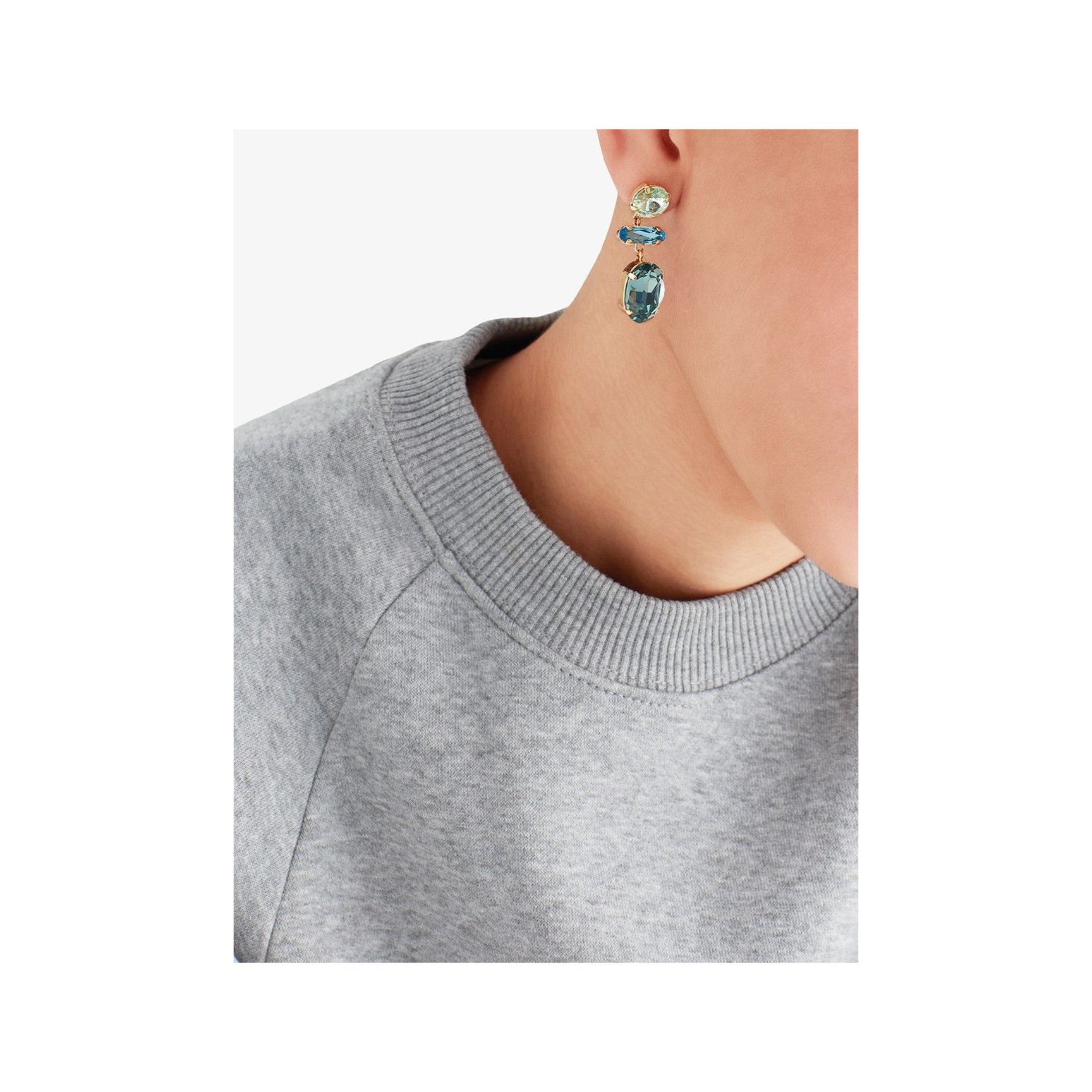「ロクサーヌ アスリン(Roxanne Assoulin)」のドロップモチーフのピアス。ブルーのトーンでまとめられたスワロフスキークリスタルがロマンチックなムードです。スウェットなどのユニセックスでカジュアルな装いに、ほんのり甘いアクセントを加えてみては。