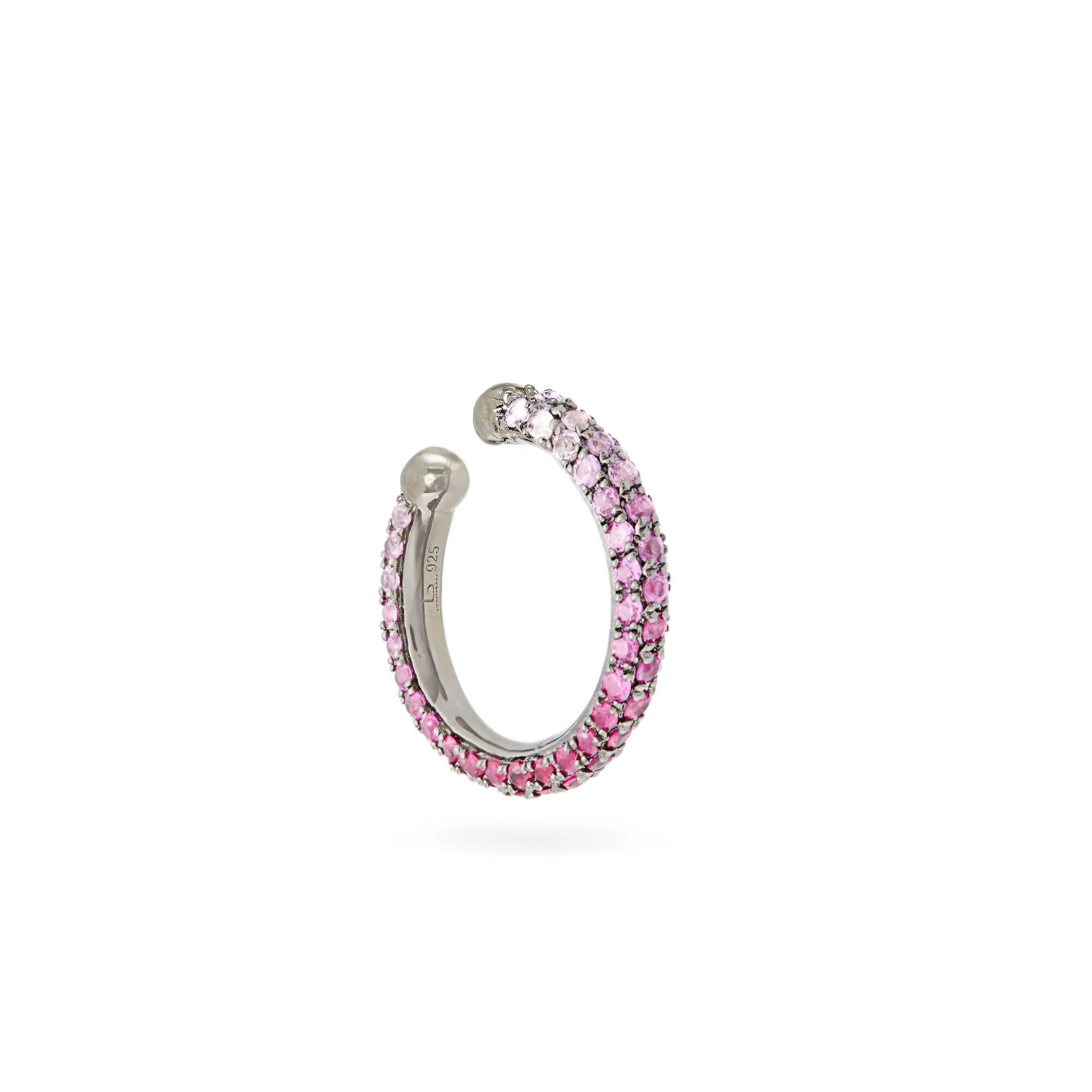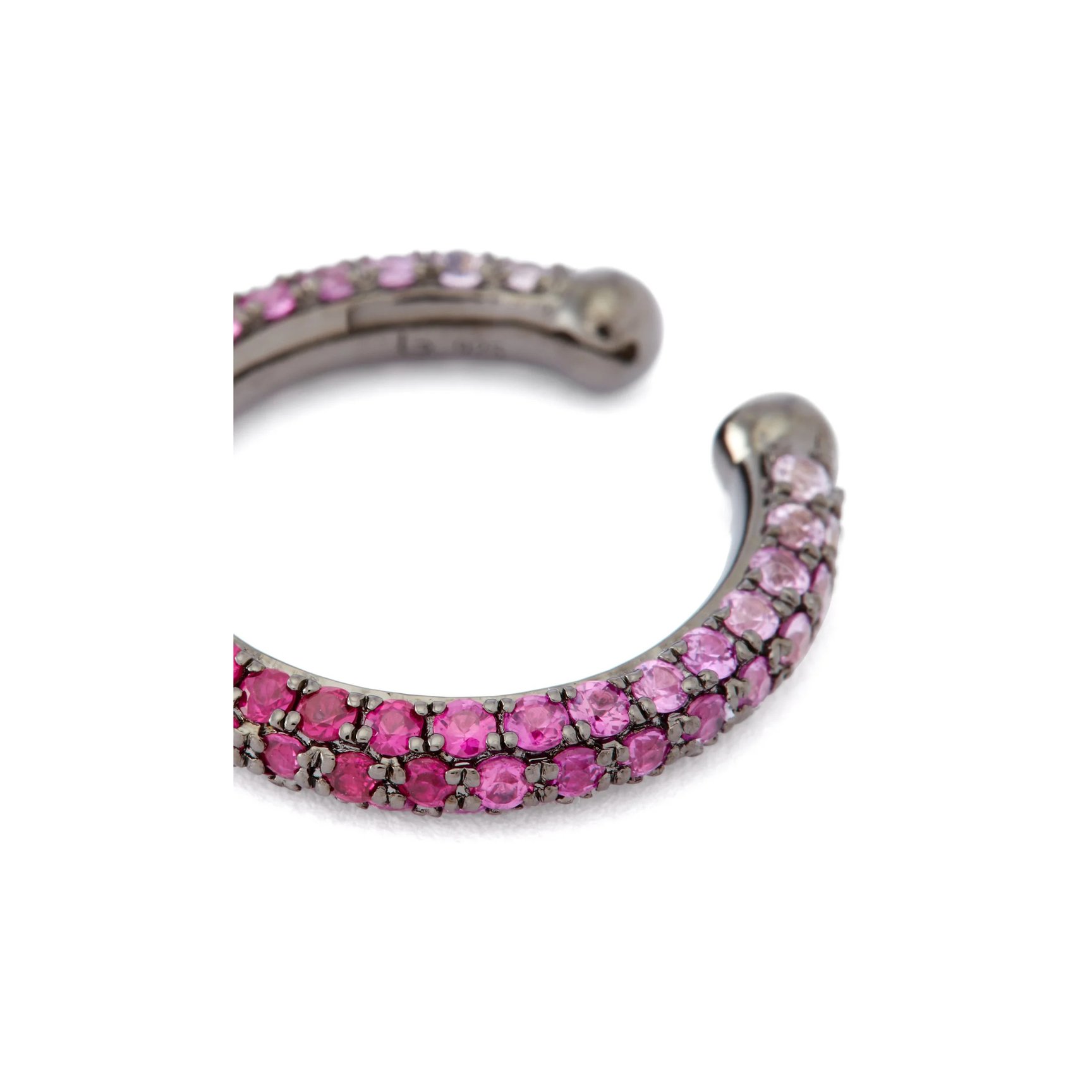 ルビーとサファイアが織りなすピンクのグラデーションが美しい「リン・バン(LYNN BAN)」のイヤーカフ。ブラックシルバーとのコンビネーションで、エッジの効いた仕上がりになっています。片耳タイプです。