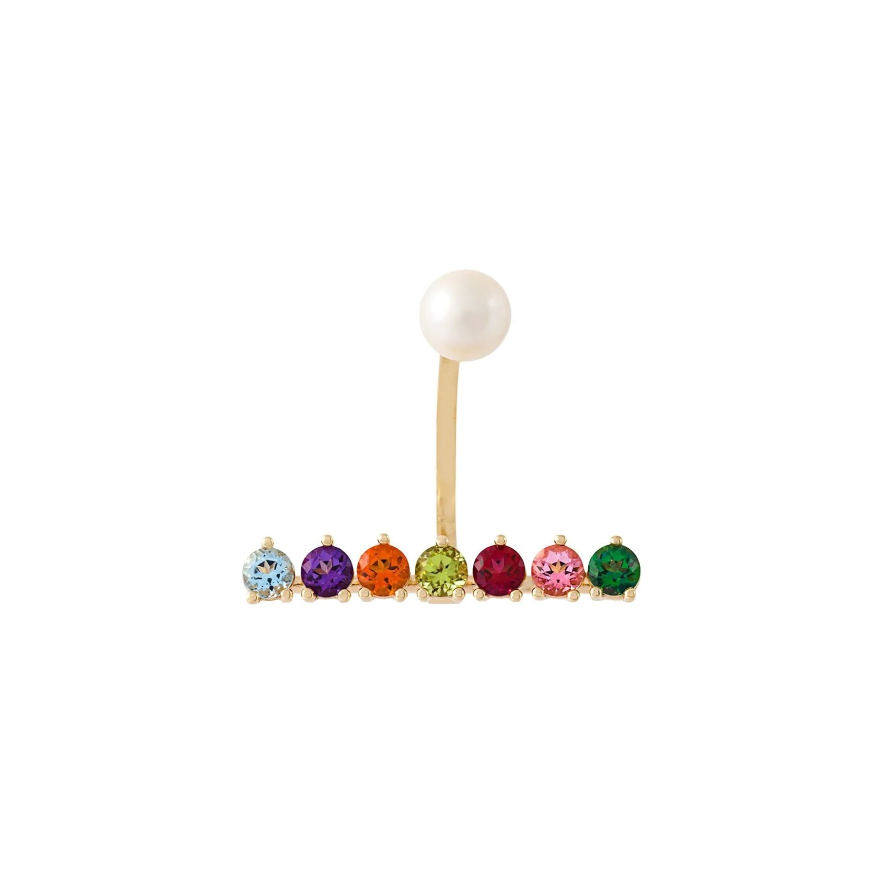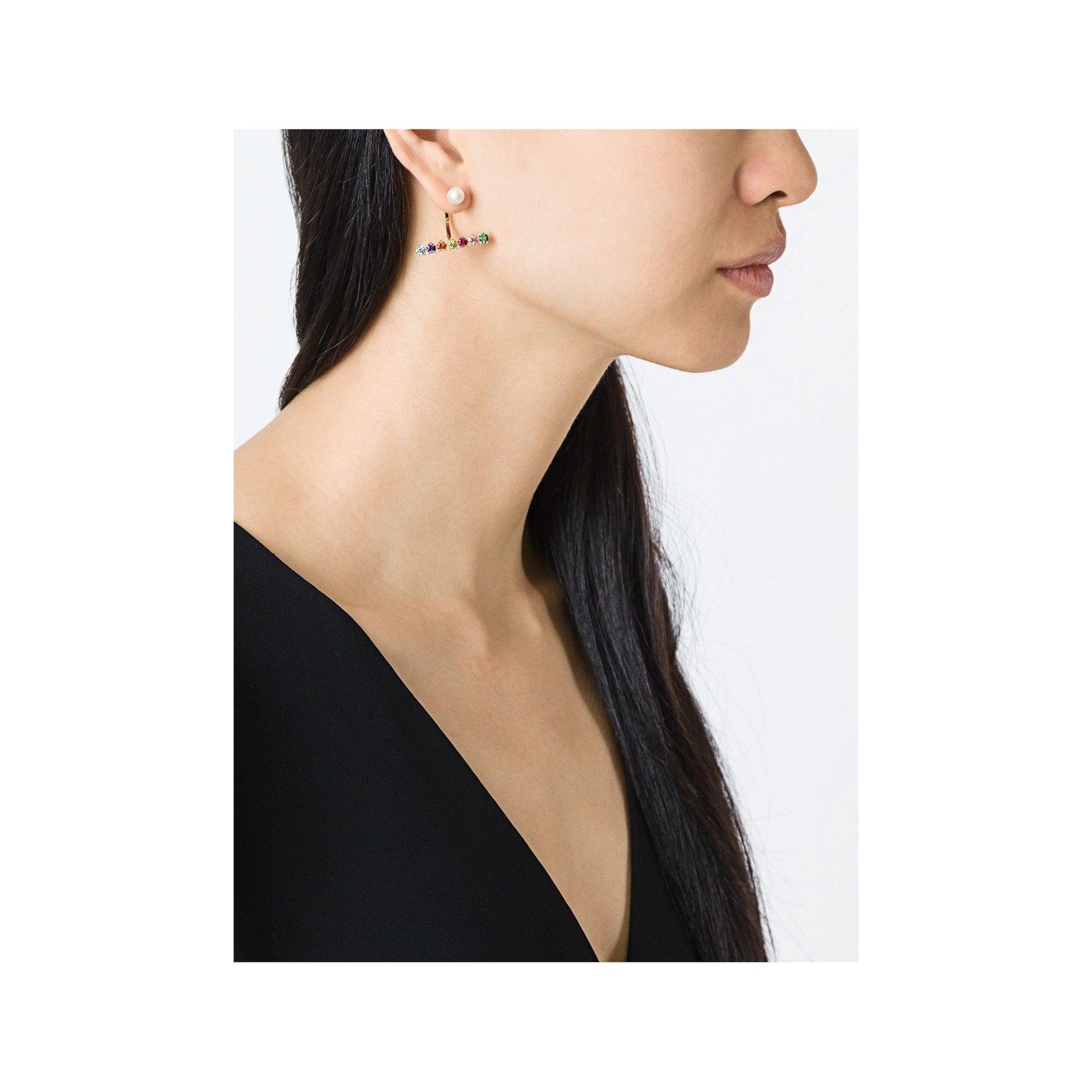 「FENDI(フェンディ)」の創業者一族出身のデザイナーによる「デルフィナ デレトレズ(Delfina Delettrez)」の片耳ピアス。モビールのようなユニークなディテールが、耳元に動きを与えてくれます。一列に並んだマルチカラーのトパーズに加え、パールの光沢もプラス。