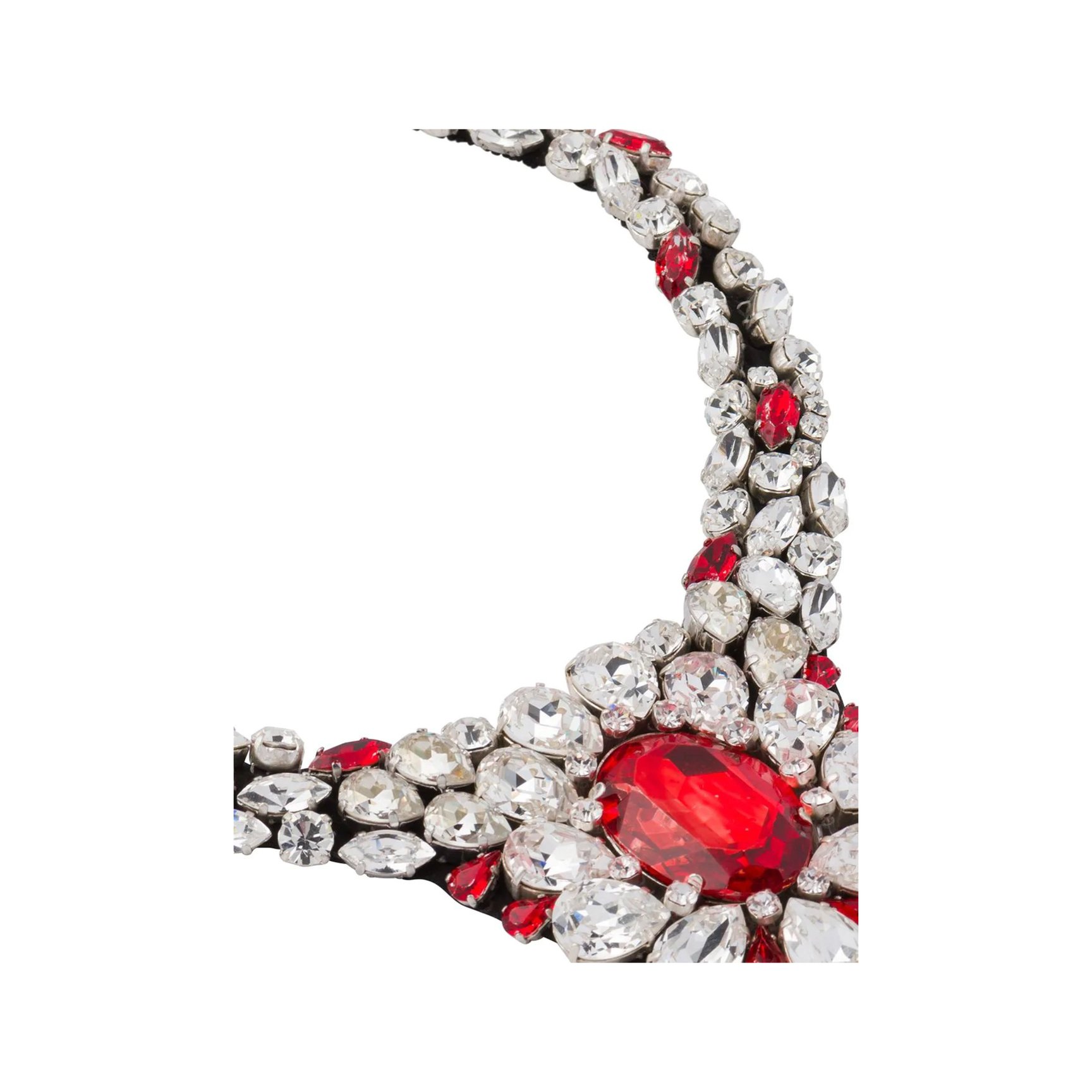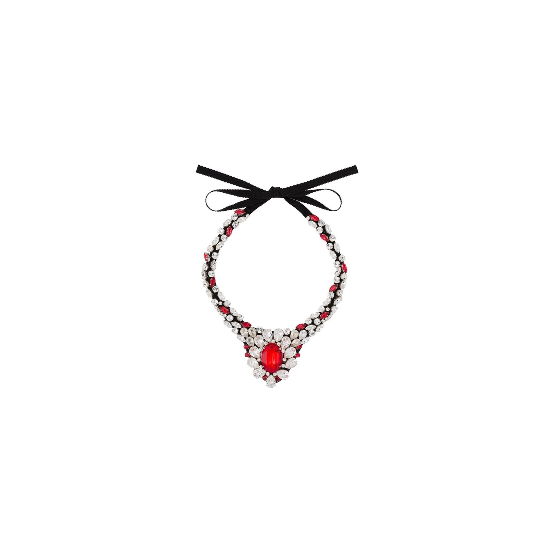「ミュウミュウ(MIU MIU)」の、鮮やかなレッドのクリスタルが輝くビジューネックレスです。ブラックでまとめたゴシックムードなファッションに好相性。リボンタイで、後ろ姿にもガーリーなアクセントを。
