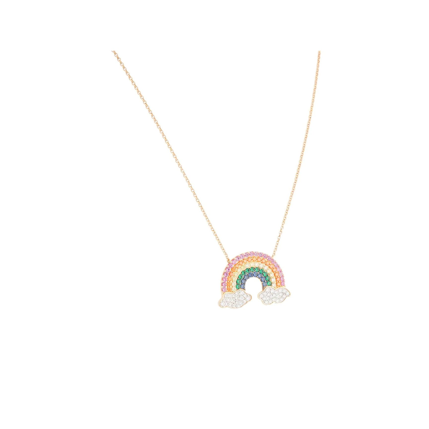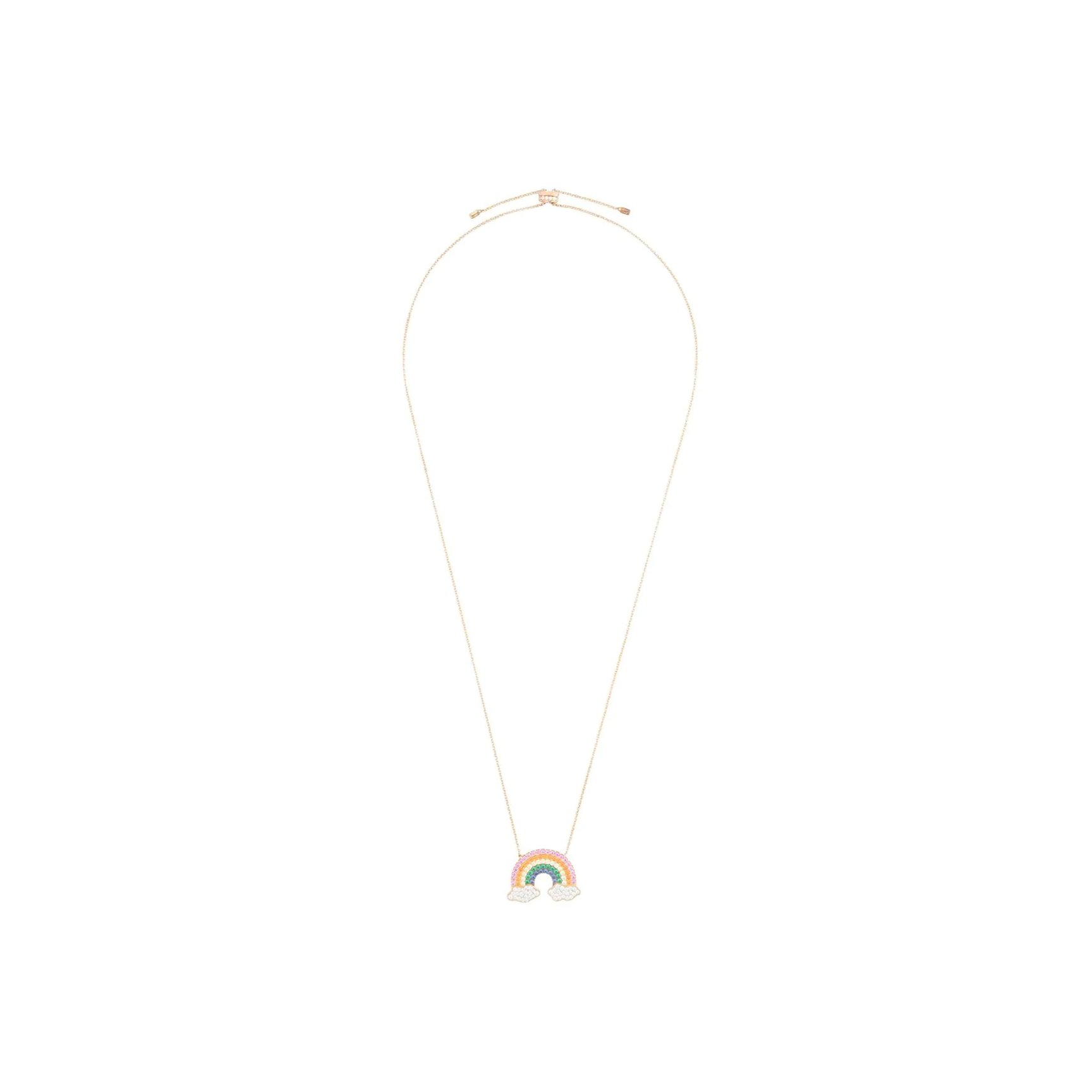 エーピーエム モナコのこちらのネックレスは、レインボー&クラウドのポップなモチーフが目を引きます。華奢なゴールドチェーンとパステルトーンの優しい色合いで、子供っぽくなりすぎずに着けられるアイテムです。