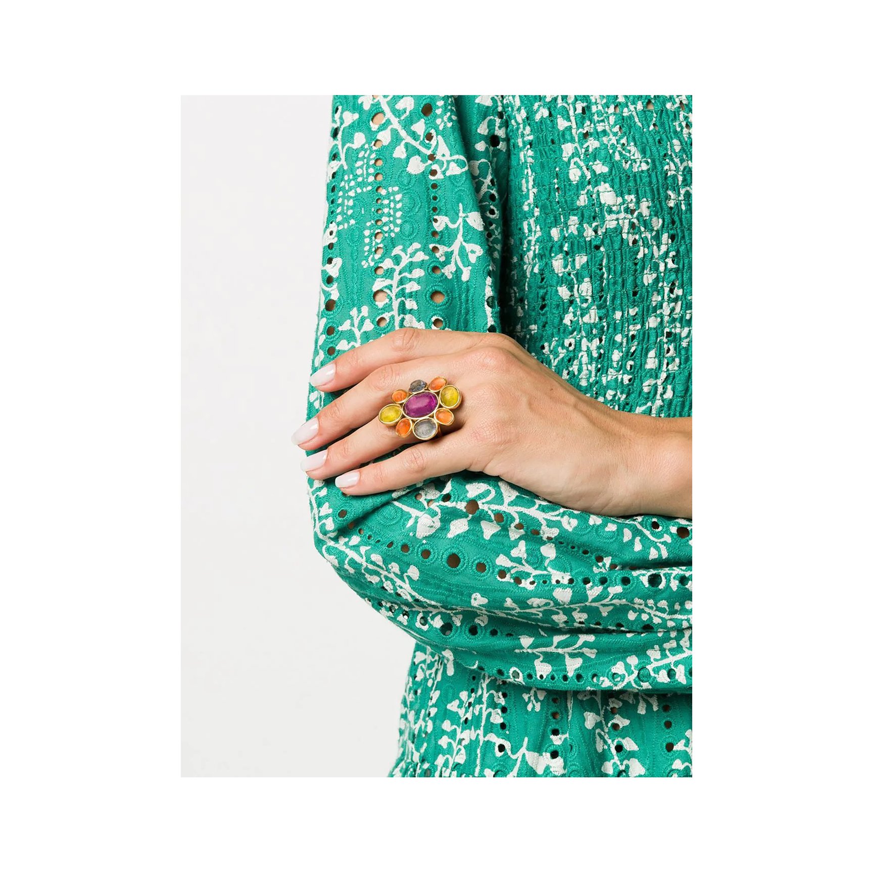 秋の果実を感じさせる色づかいの「ゴッサンス(Goossens)」のリング。カラフルなクリスタルが花のように配されたボリューミーなデザインです。クリスタルの素材感をそのまま活かしたラフなディテールがこなれ感を演出。同じデザインでイエロー系とグリーン系のカラバリもあるので、好みのカラーリングから選んでみては。