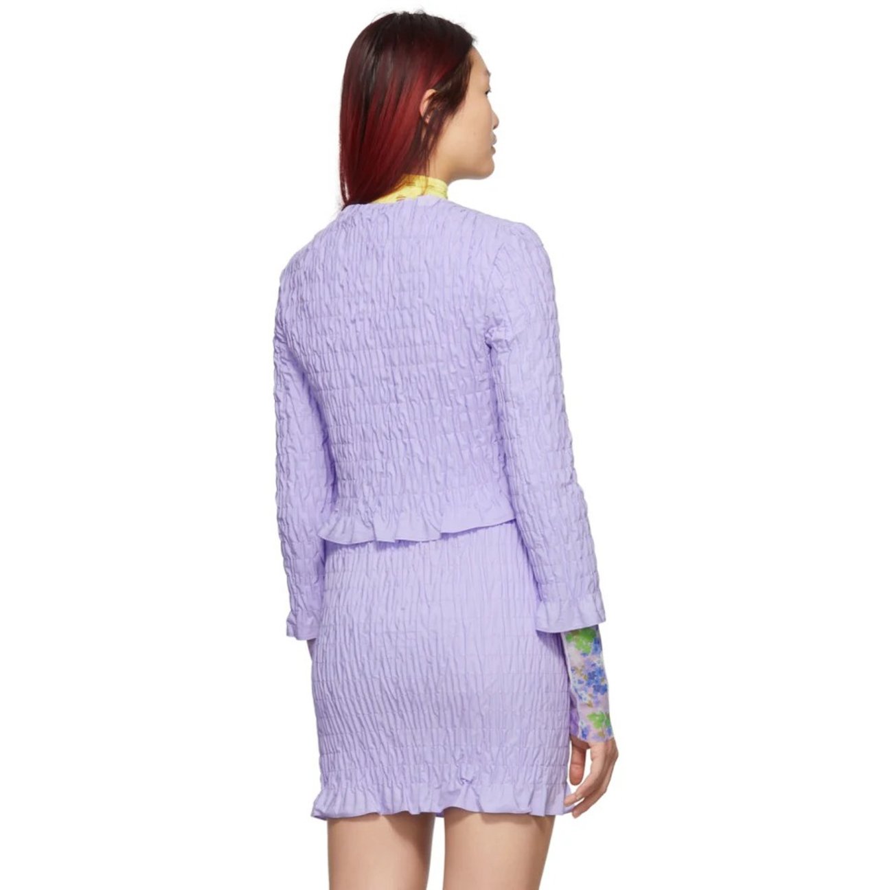 女性らしいアイテムを探しているなら「エムエスジーエム(MSGM)」のノーカラージャケットはいかが?全体をシャーリング加工し、裾と袖口のラッフルで愛らしさを加えたガーリーなデザインです。