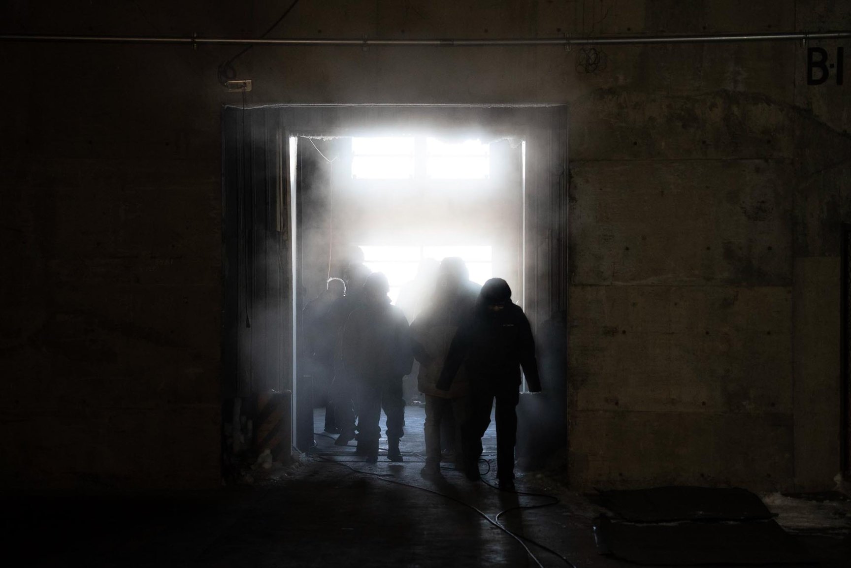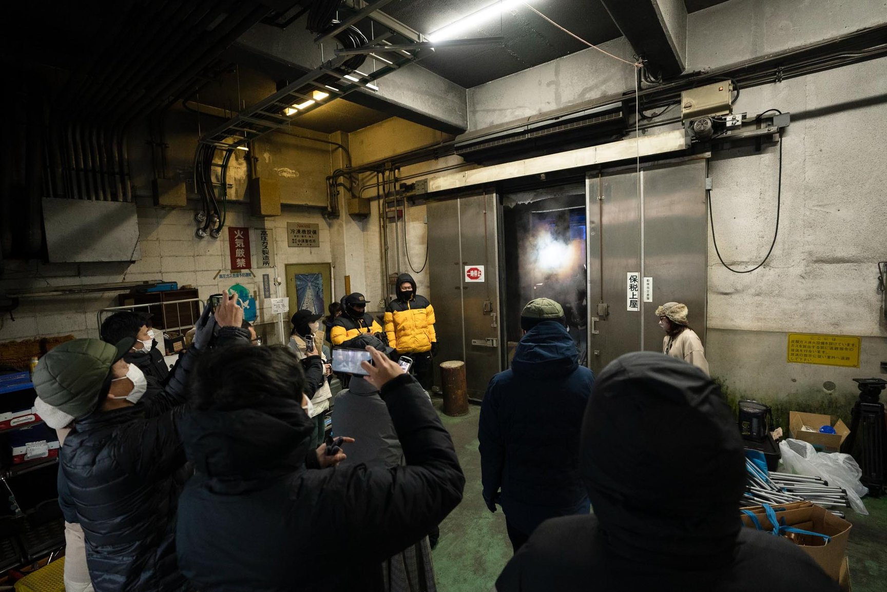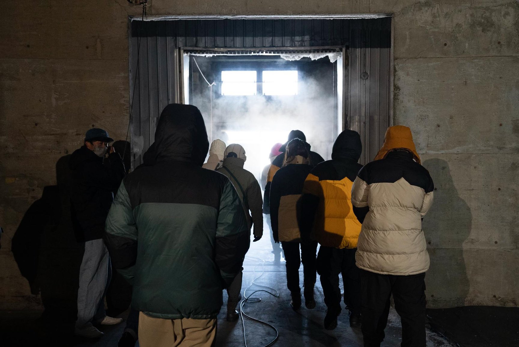 フル装備に着替え、いざ会場へ。冷凍倉庫の重厚な扉が開いただけで冷気を感じます。ちなみに、一般的なスニーカーで入場しようとすると、担当の方から「やめておいたほうがいいですよ」と言われました。
