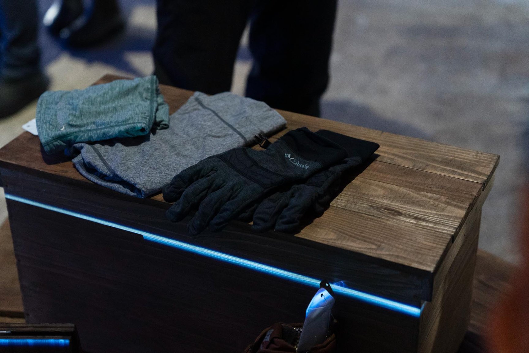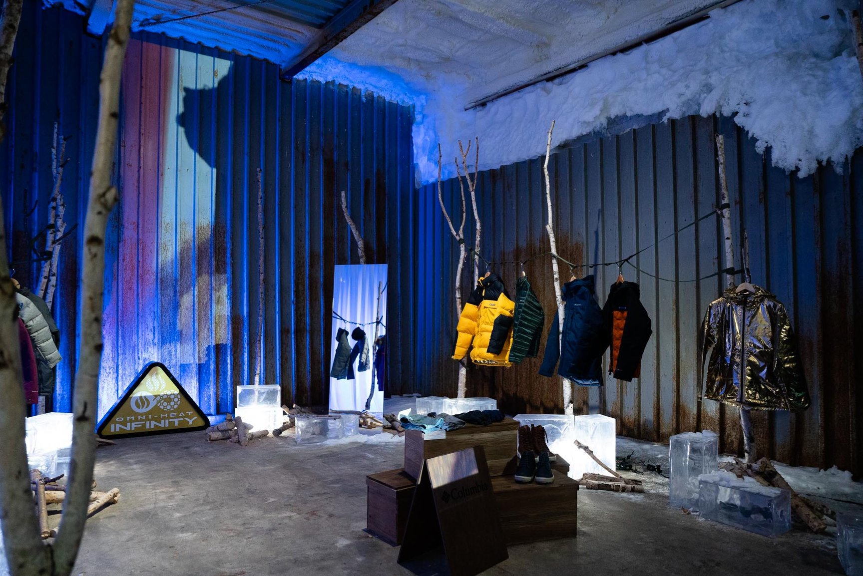 会場内では、ダウンのほか、フットウェアや手袋、ネックウォーマーを展示。すべてのアイテムにオムニヒートインフィニティが使用されています。また、今後開かれるポップアップショップでは、今回のディスプレイを参考に展開されるようです。