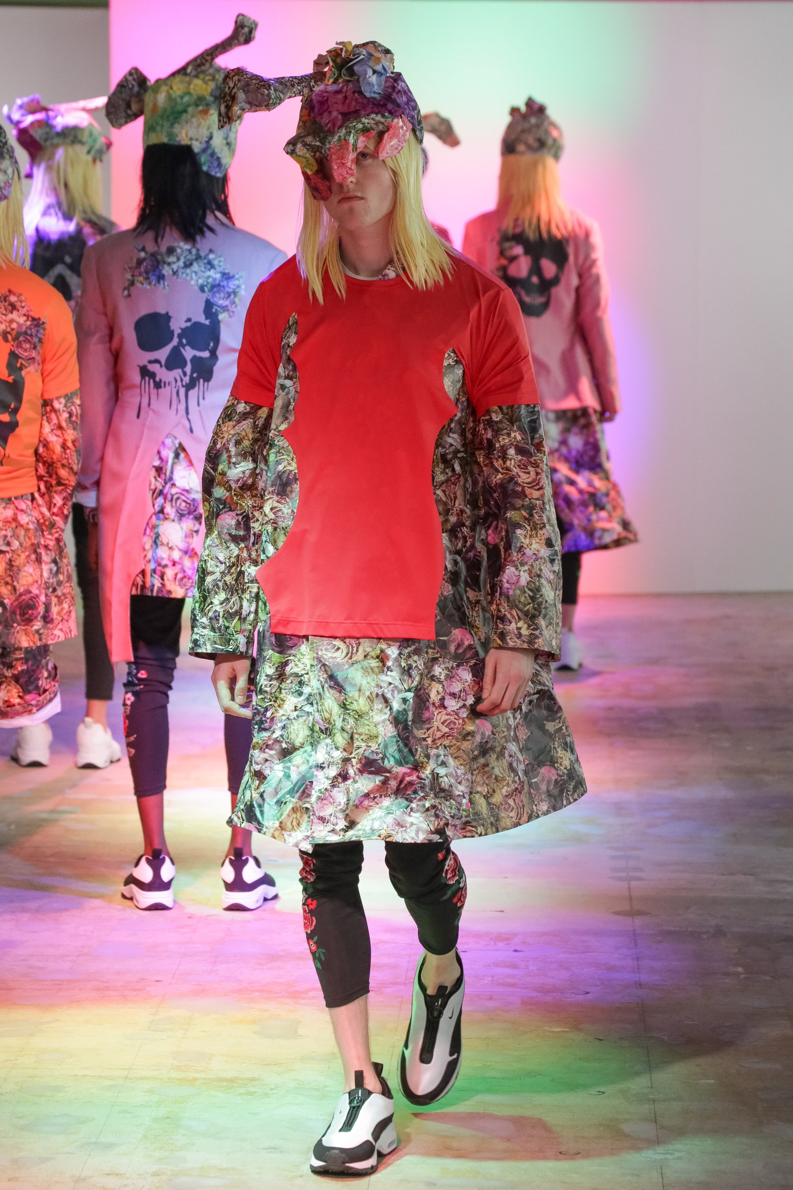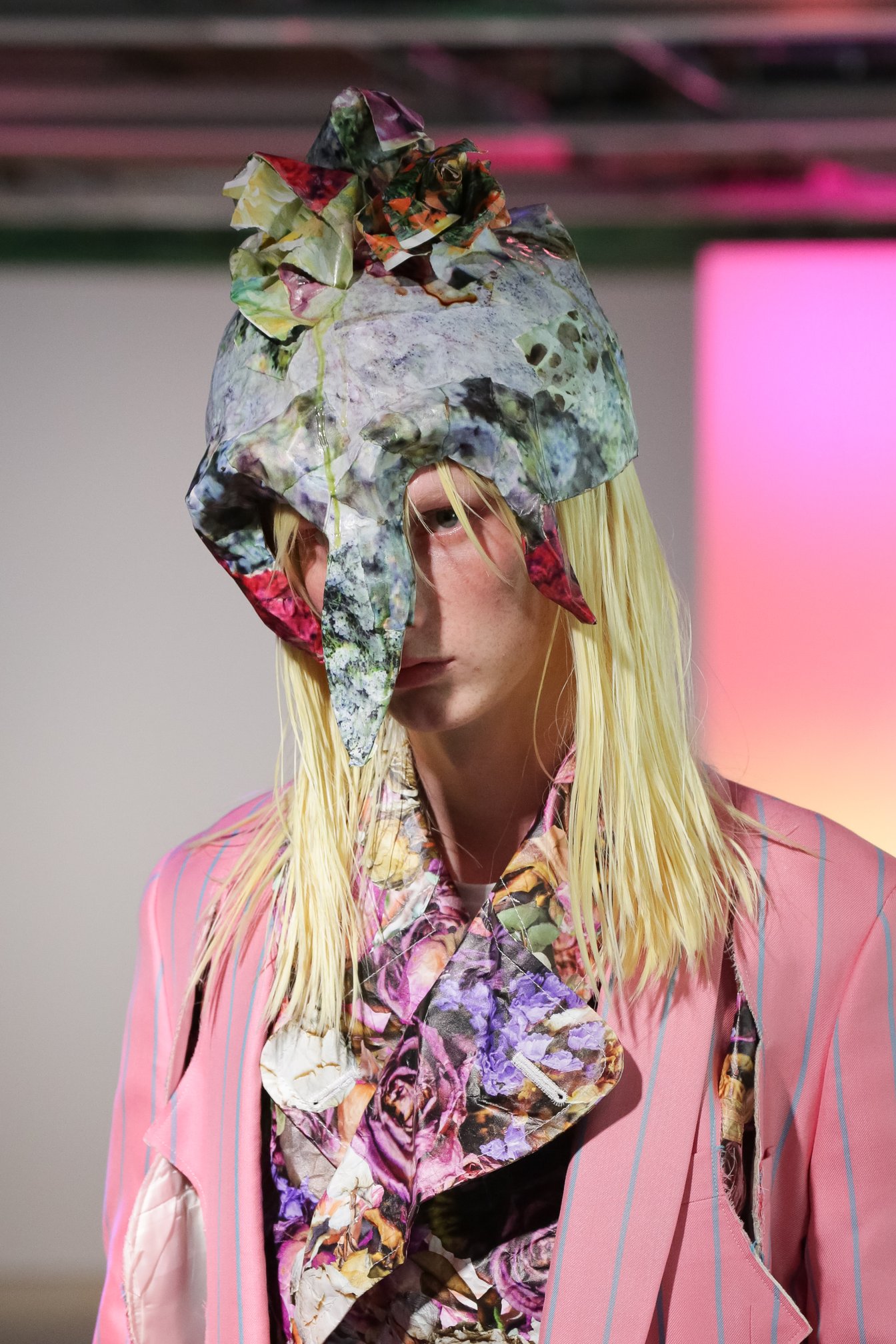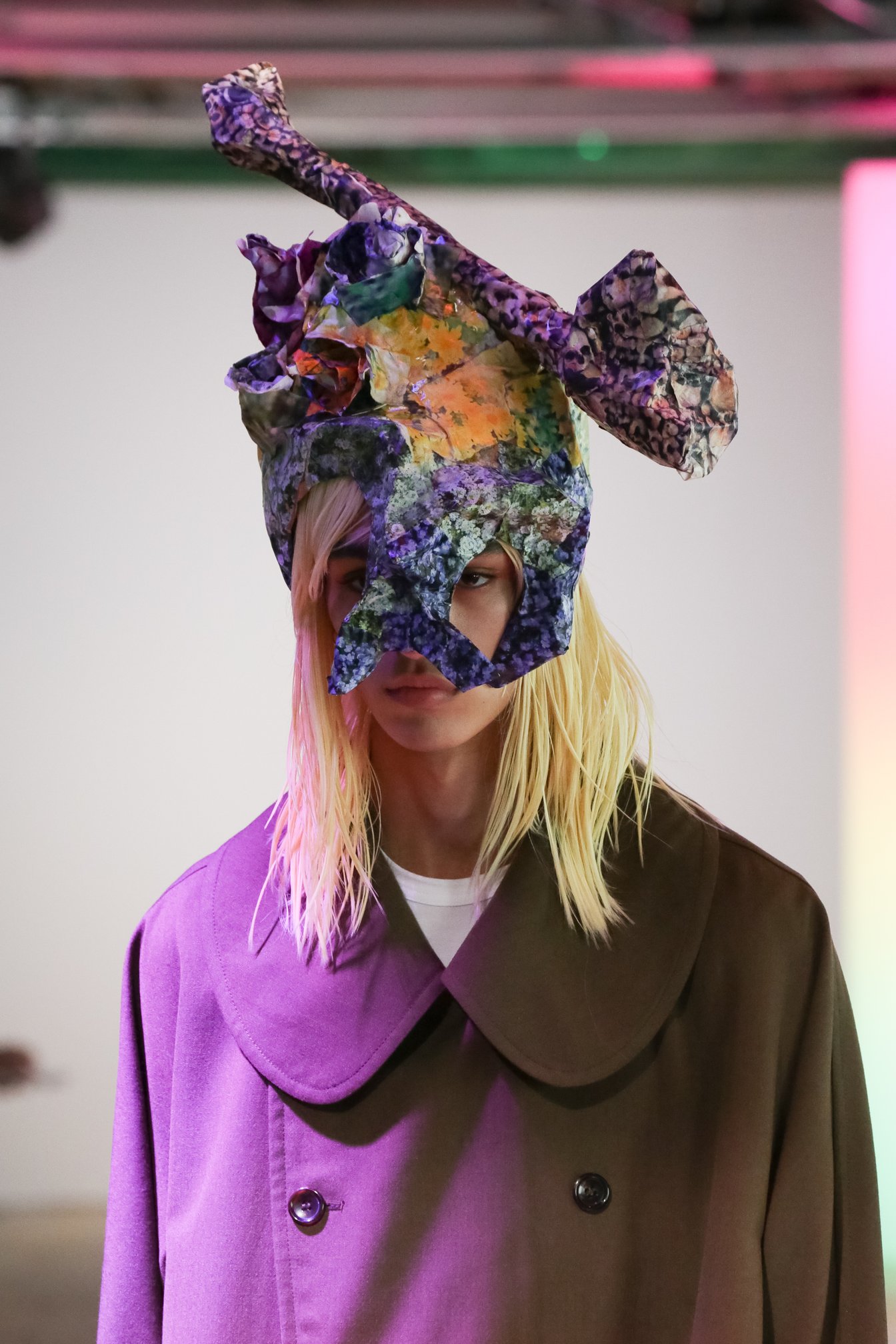 また、スカルと花柄の素材で作られた造形的なヘッドピースは、ウィメンズのコレクションでも起用したイブラヒム・カマラ(Ibrahim Kamara)が手掛けている。