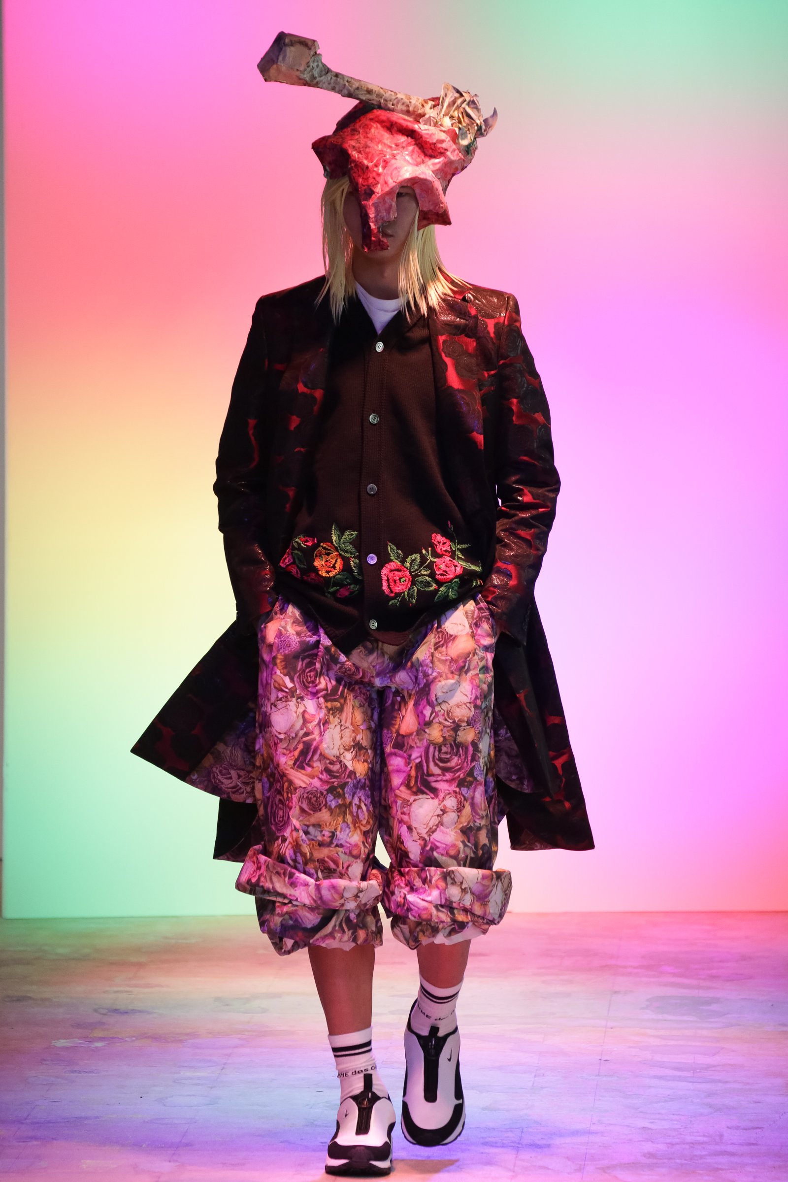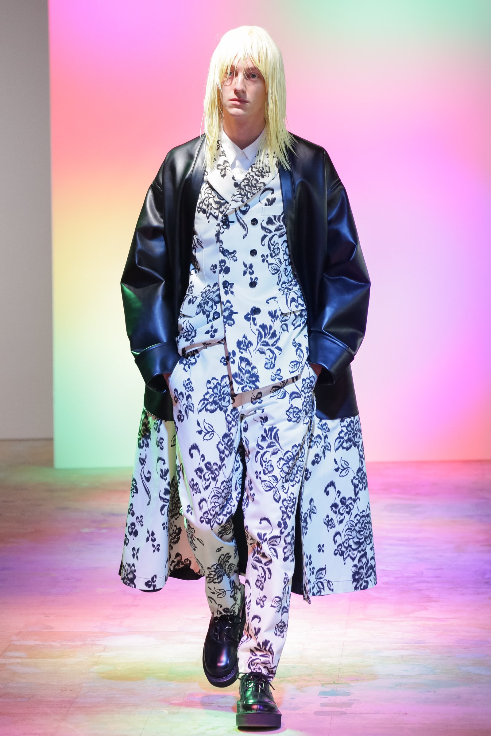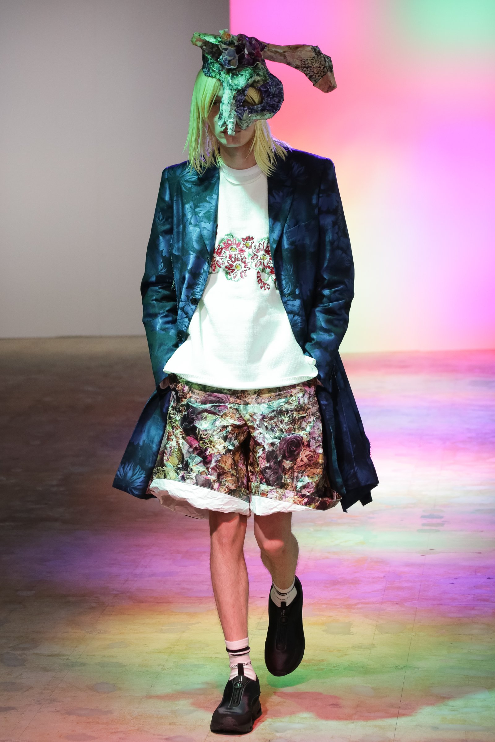 暗闇の中から生み出されるものに焦点を当て「DARKROOM(暗い部屋)」をタイトルに掲げた前回の2021-22年秋冬コレクションから一転。今回は全ルックに花、花、花——どこか不完全なシルエットのメンズウェアに花々が咲き乱れた。