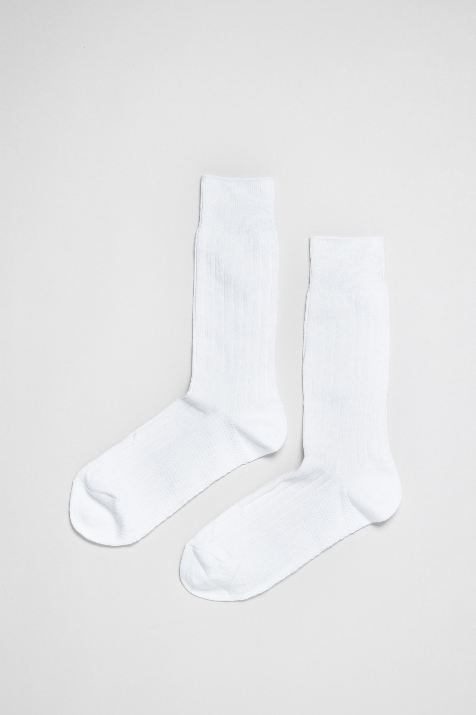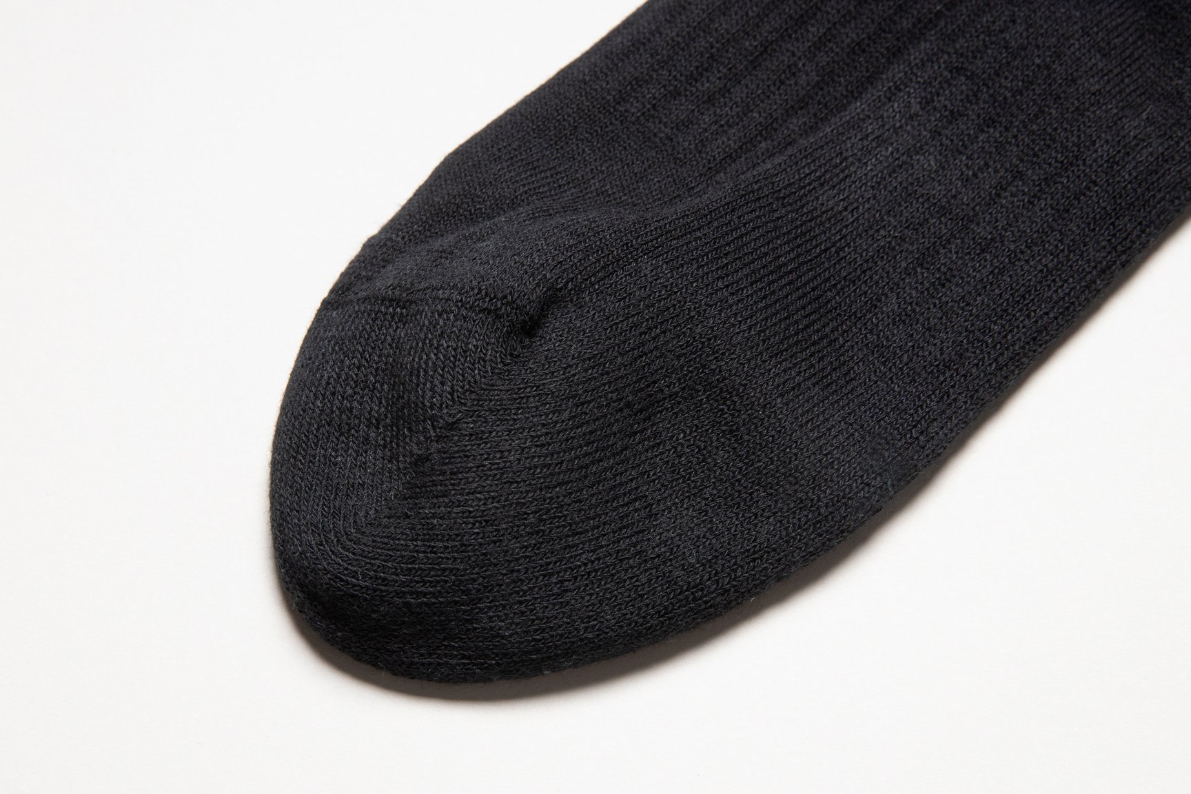 少し肉厚なふっくらとしたリブソックス。素材は綿とポリエステルを採用し、抗菌防臭加工が施されています。